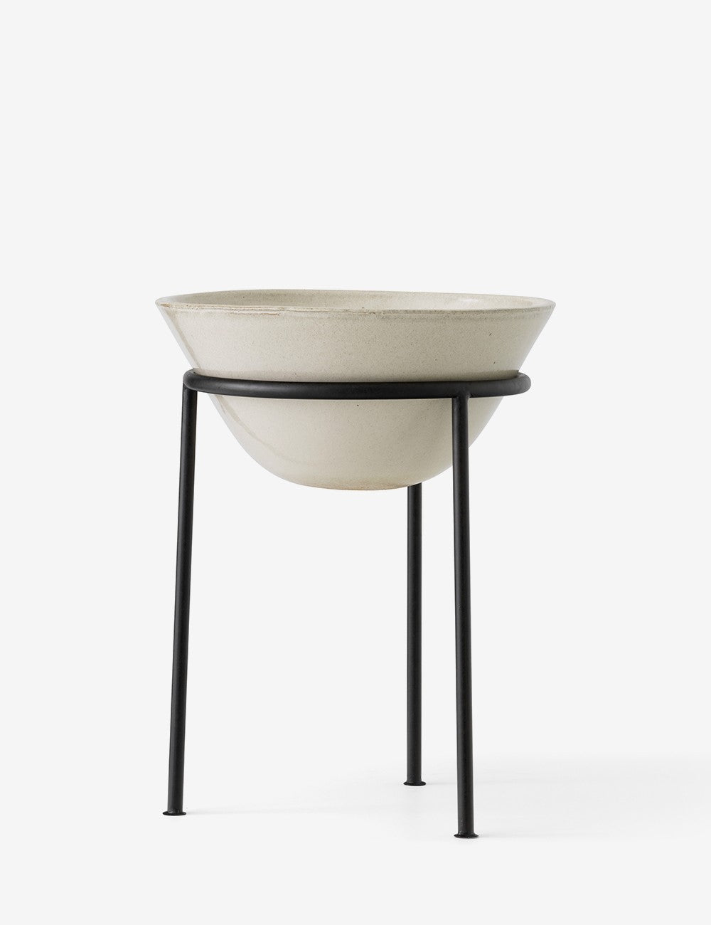 El diseño de Daiza está formado por una base realizada en acero, donde se apoya la maceta de gres con un esmalte reactivo de alto brillo que es aplicado manualmente, lo que hace que cada pieza sea única.
