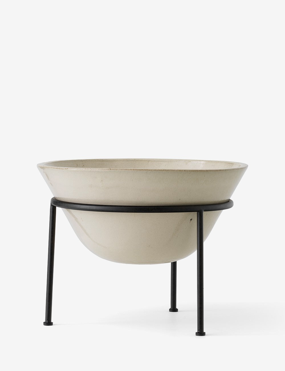 El diseño de Daiza está formado por una base realizada en acero, donde se apoya la maceta de gres con un esmalte reactivo de alto brillo que es aplicado manualmente, lo que hace que cada pieza sea única.