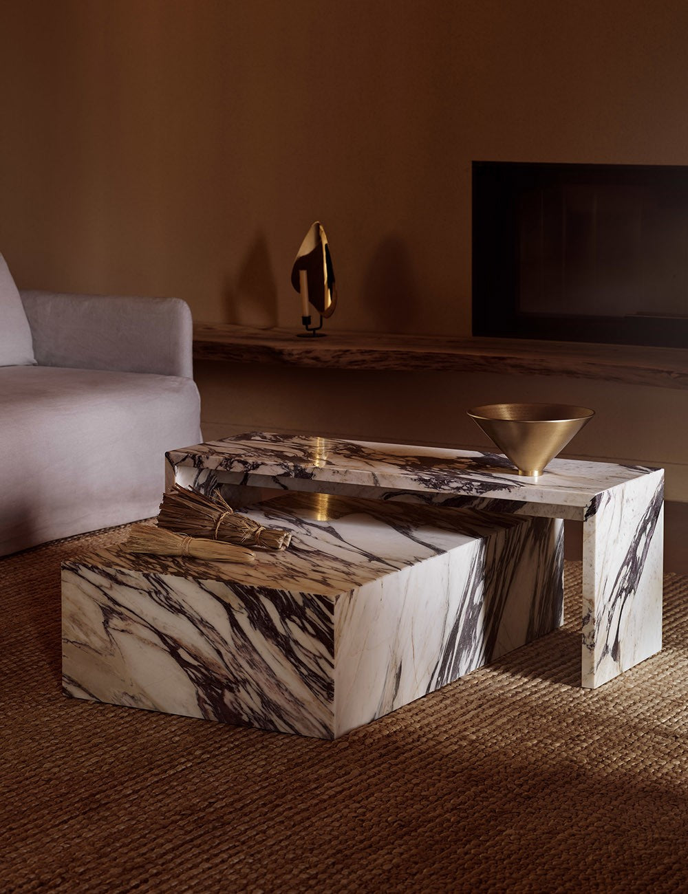 El diseño sencillo de líneas rectas de Plinth resalta la belleza del mármol dando como resultado piezas atemporales con carácter elegante.