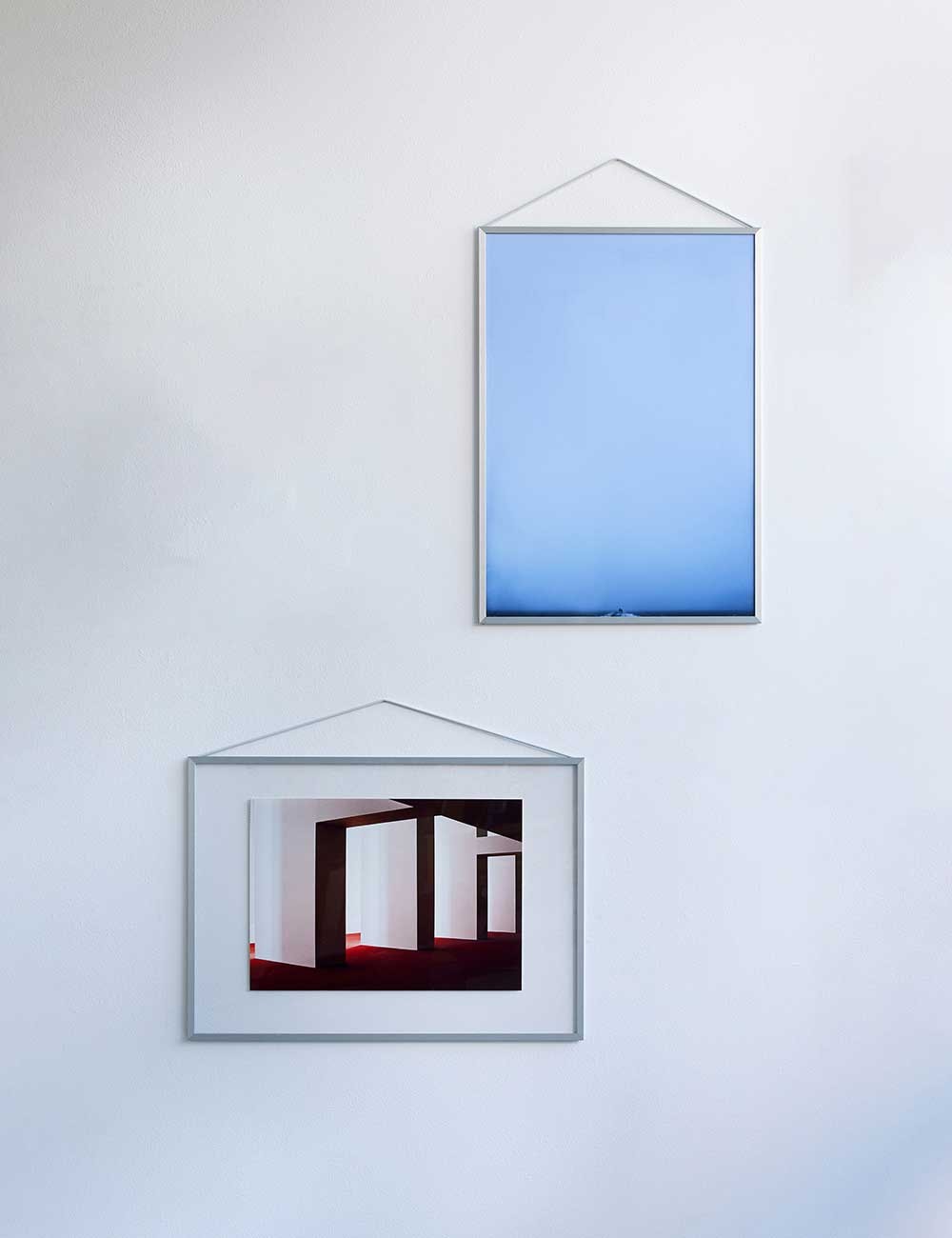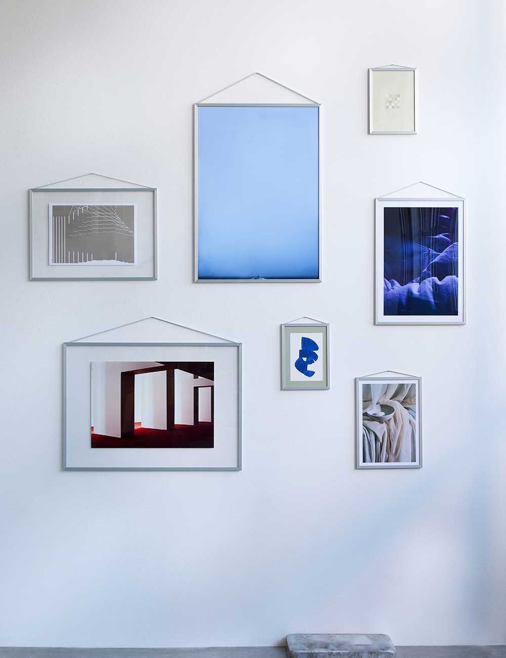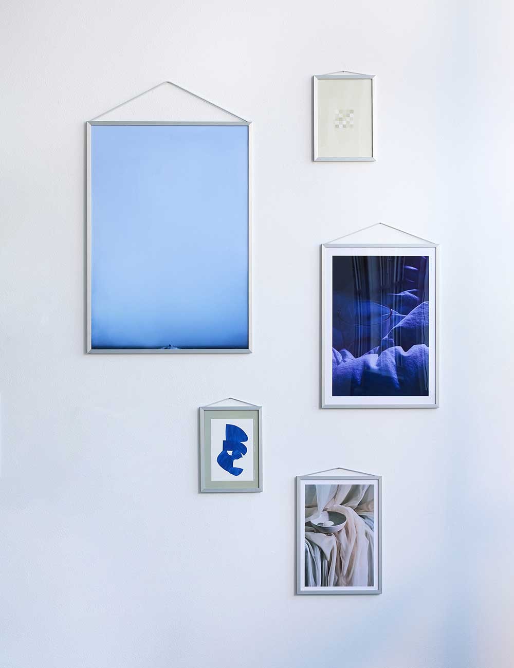 El marco extraligero de Moebe combina simplicidad y originalidad en un diseño conceptual propio de la reconocida marca danesa. Está formado por dos láminas de metacrilato, cuatro perfiles de alta calidad y un cordón de caucho que, además de unir todas las piezas, funciona como colgador.
