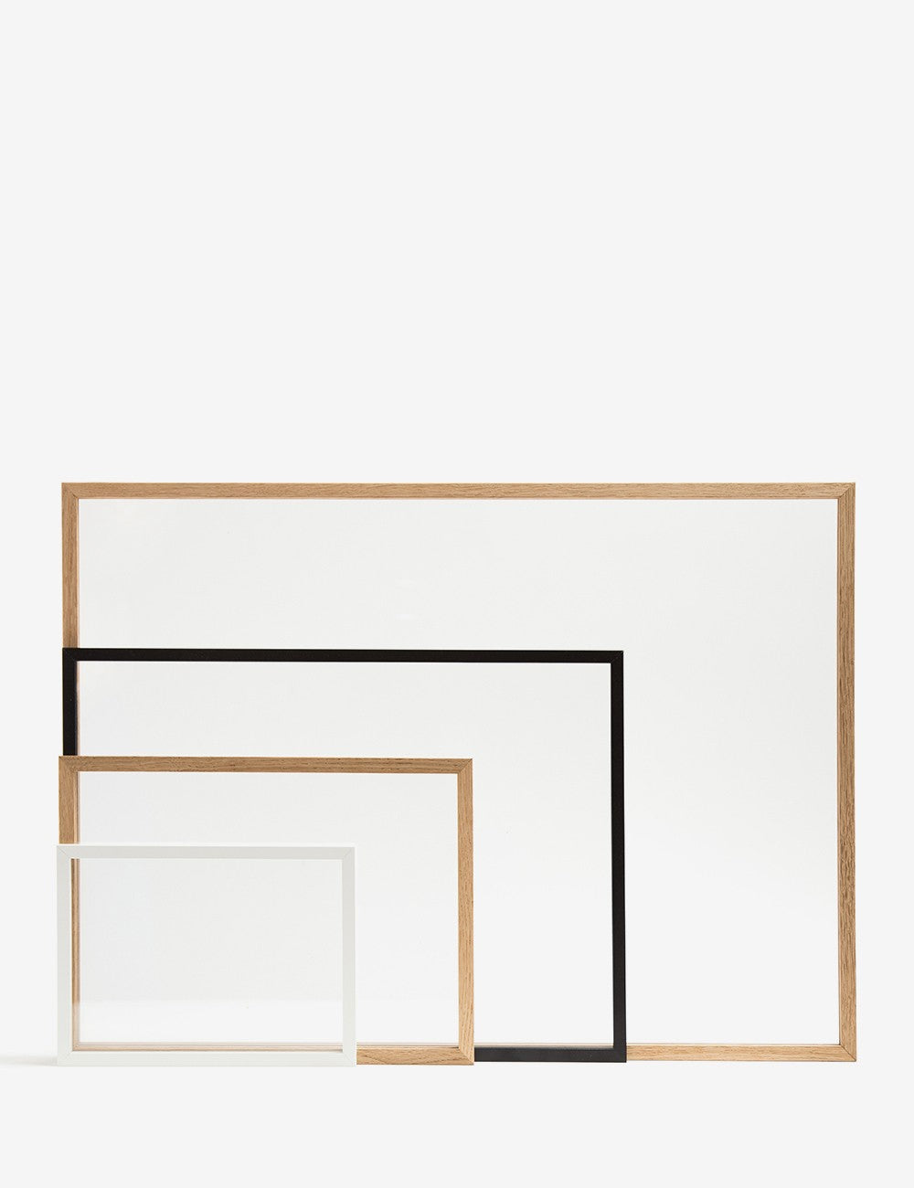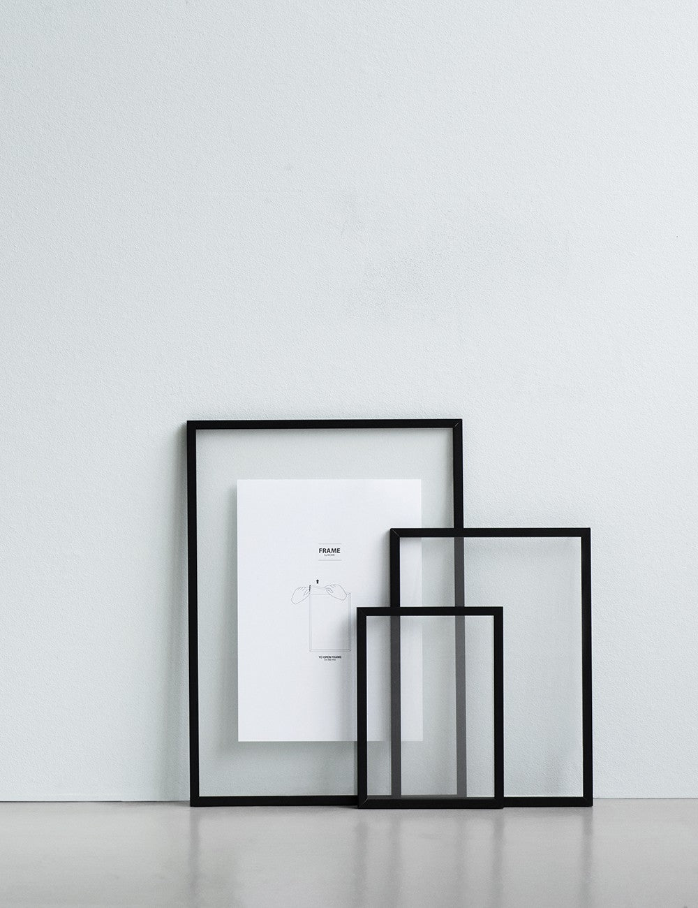 Este marco extra ligero es un diseño simple y conceptual de la marca danesa Moebe, que está compuesto por dos láminas de metacrilato, cuatro perfiles, un cordón de caucho que une el conjunto y a su vez sirve de colgador.