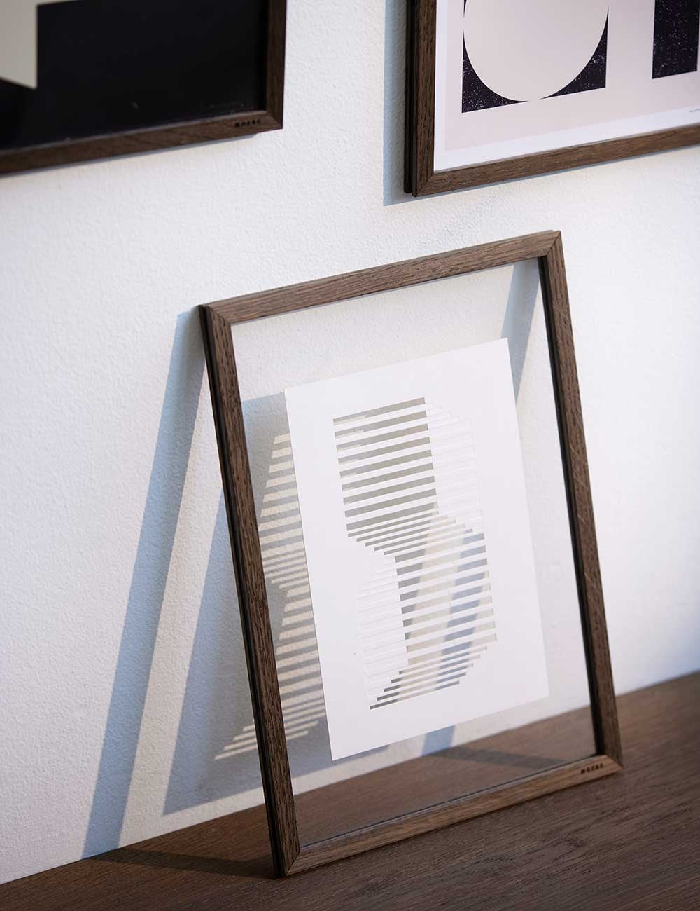 Este marco extra ligero es un diseño simple y conceptual de la marca danesa Moebe, que está compuesto por dos láminas de metacrilato, cuatro perfiles, un cordón de caucho que une el conjunto y a su vez sirve de colgador.