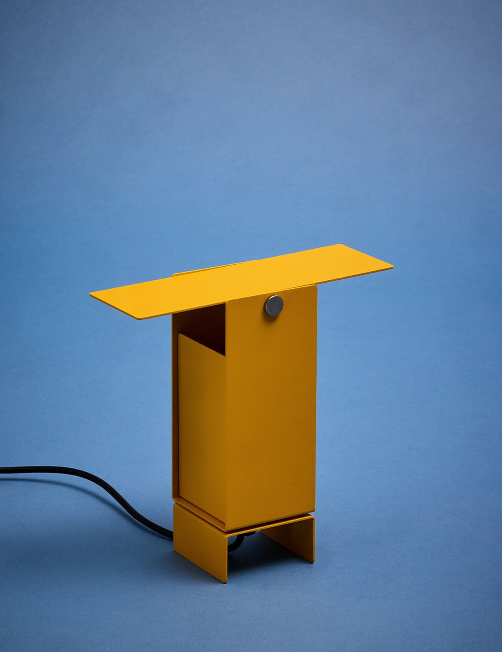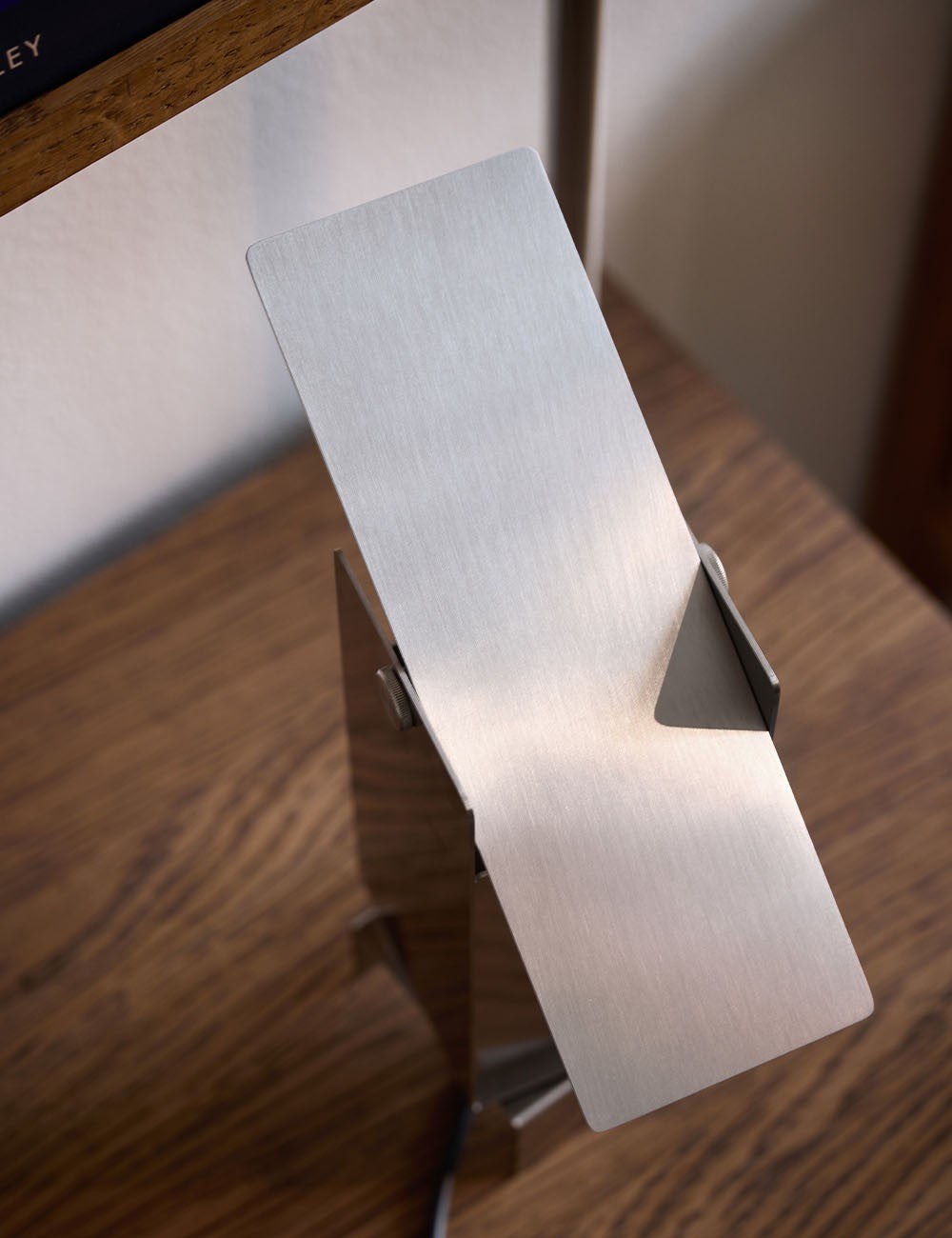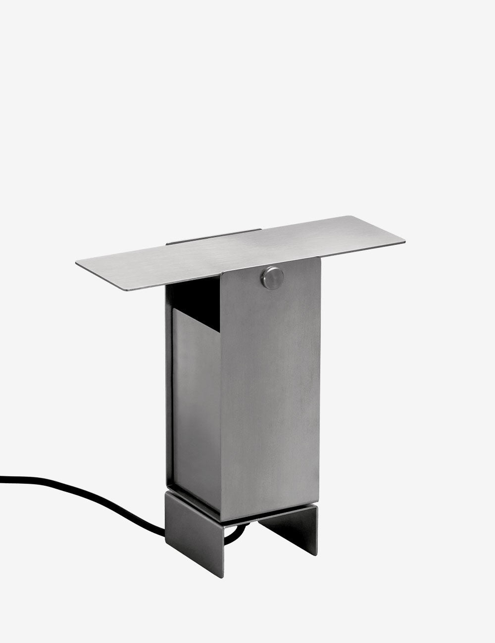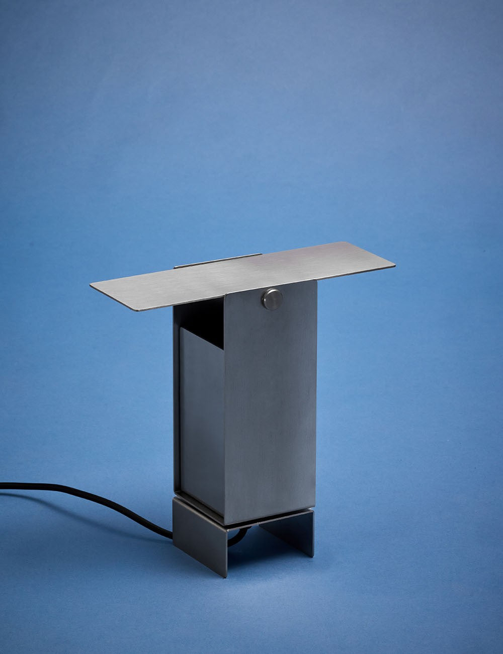 Formada por cuatro láminas de acero: tres se doblan en forma de U entrelazadas y se fijan en el centro, mientras que la cuarta actúa como deflector de luz en la parte superior, lo que permite un control dinámico de la dirección de la luz.