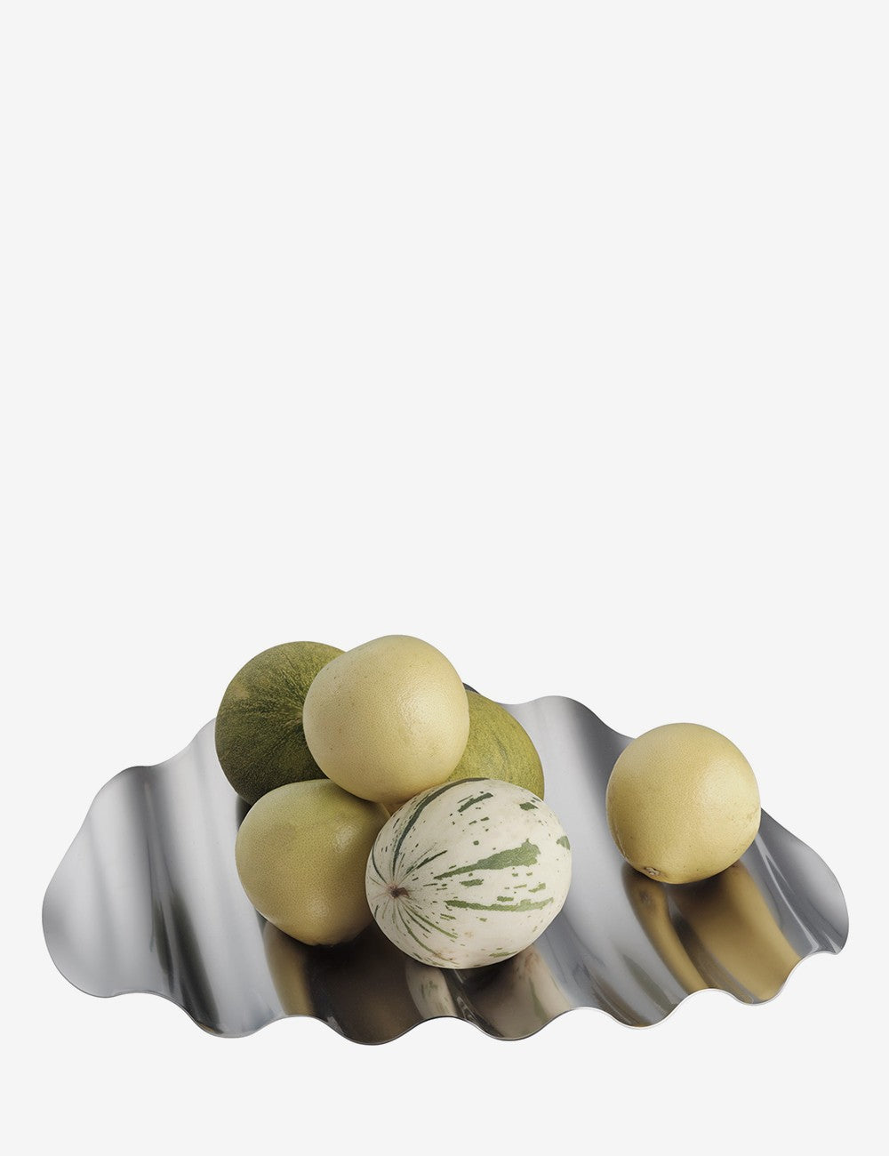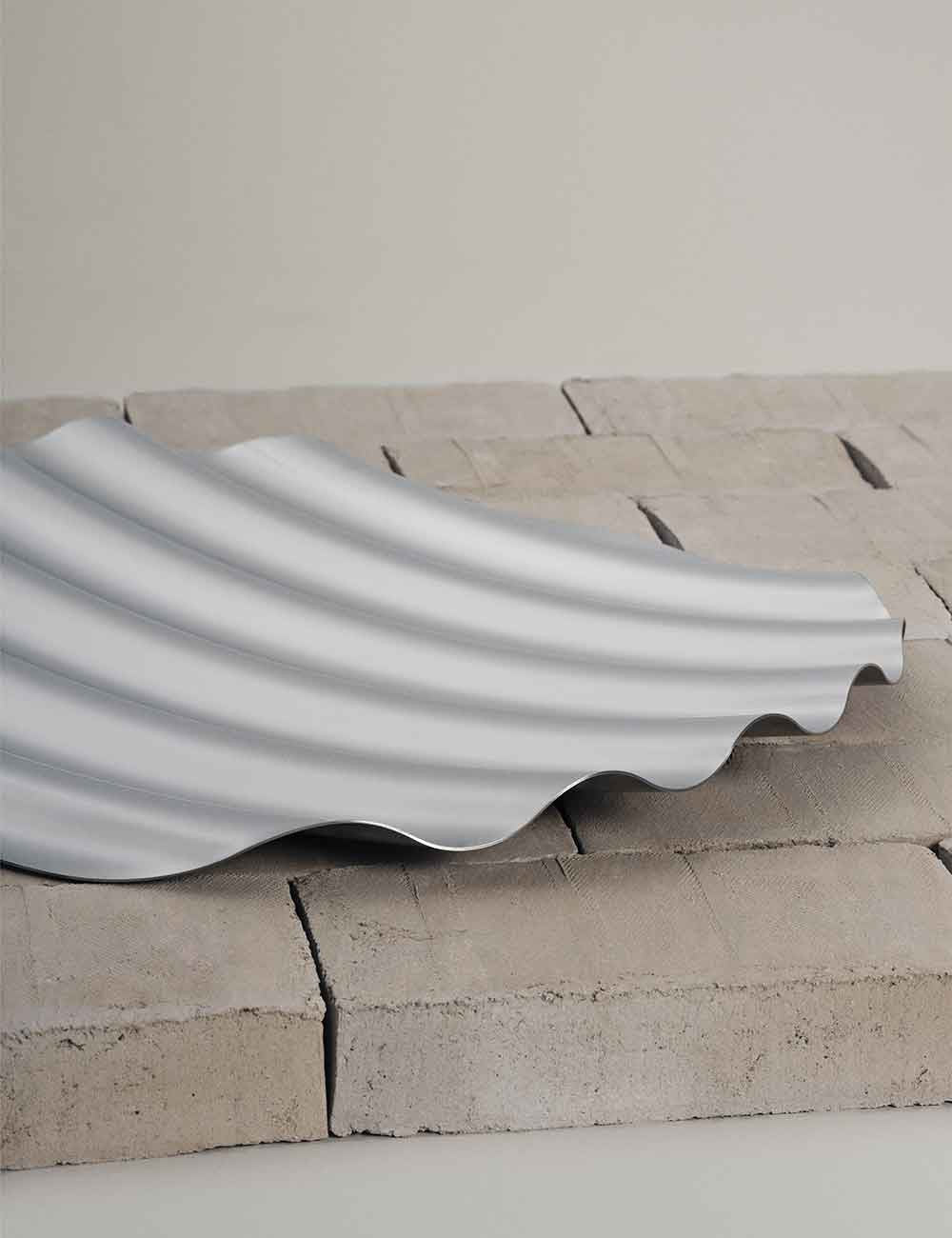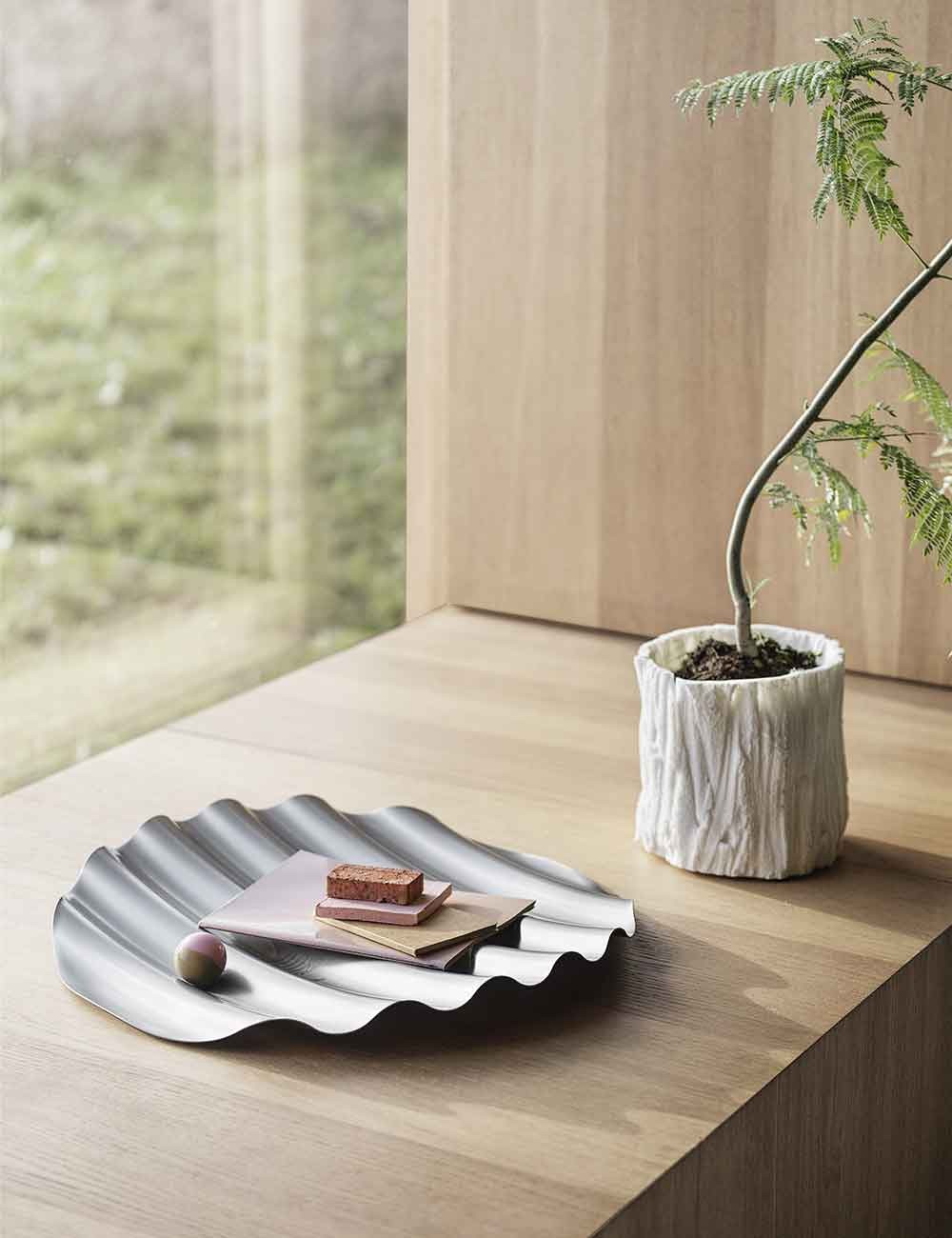 Wave Tray de CARA \ DAVIDE para Muuto combina formas orgánicas con acero en estado puro dando como resultado una pieza elegante.