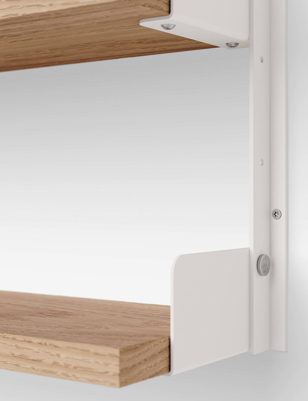 Las barras de pared pueden combinarse con estantes, revisteros, mesas de trabajo y armarios para formar el sistema que mejor se adapte a sus necesidades.