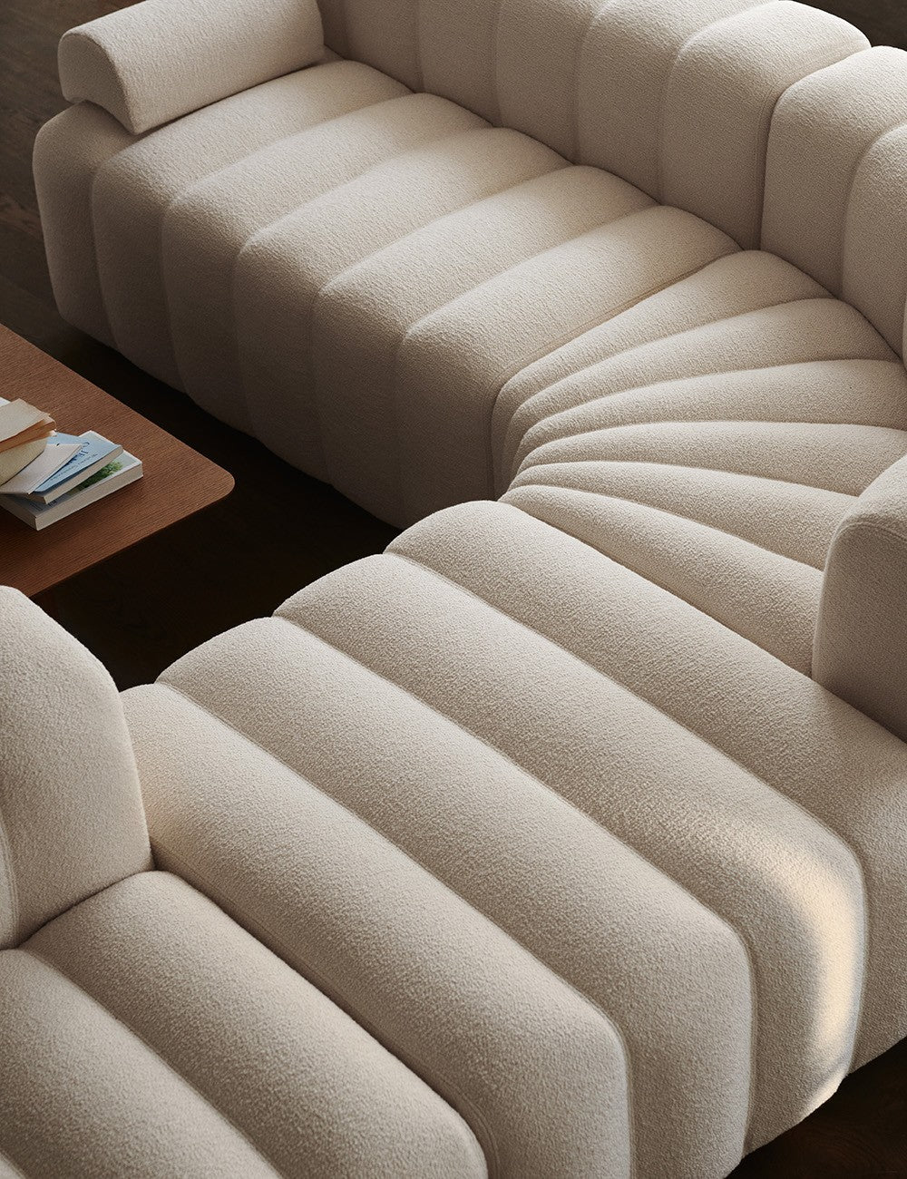 Esta versión de Studio está tapizada en un lujoso bouclé de textura suave.