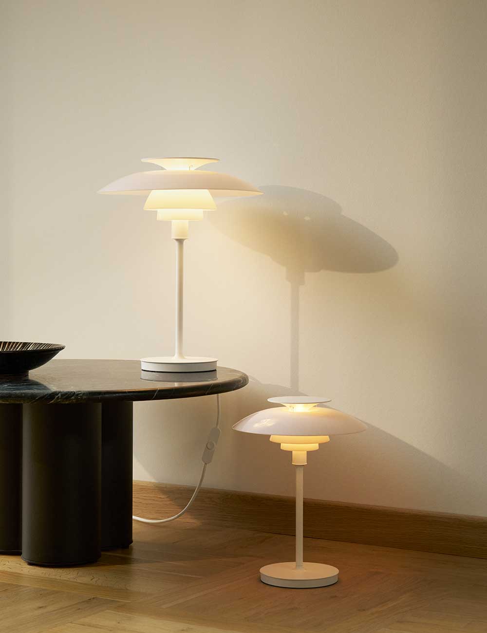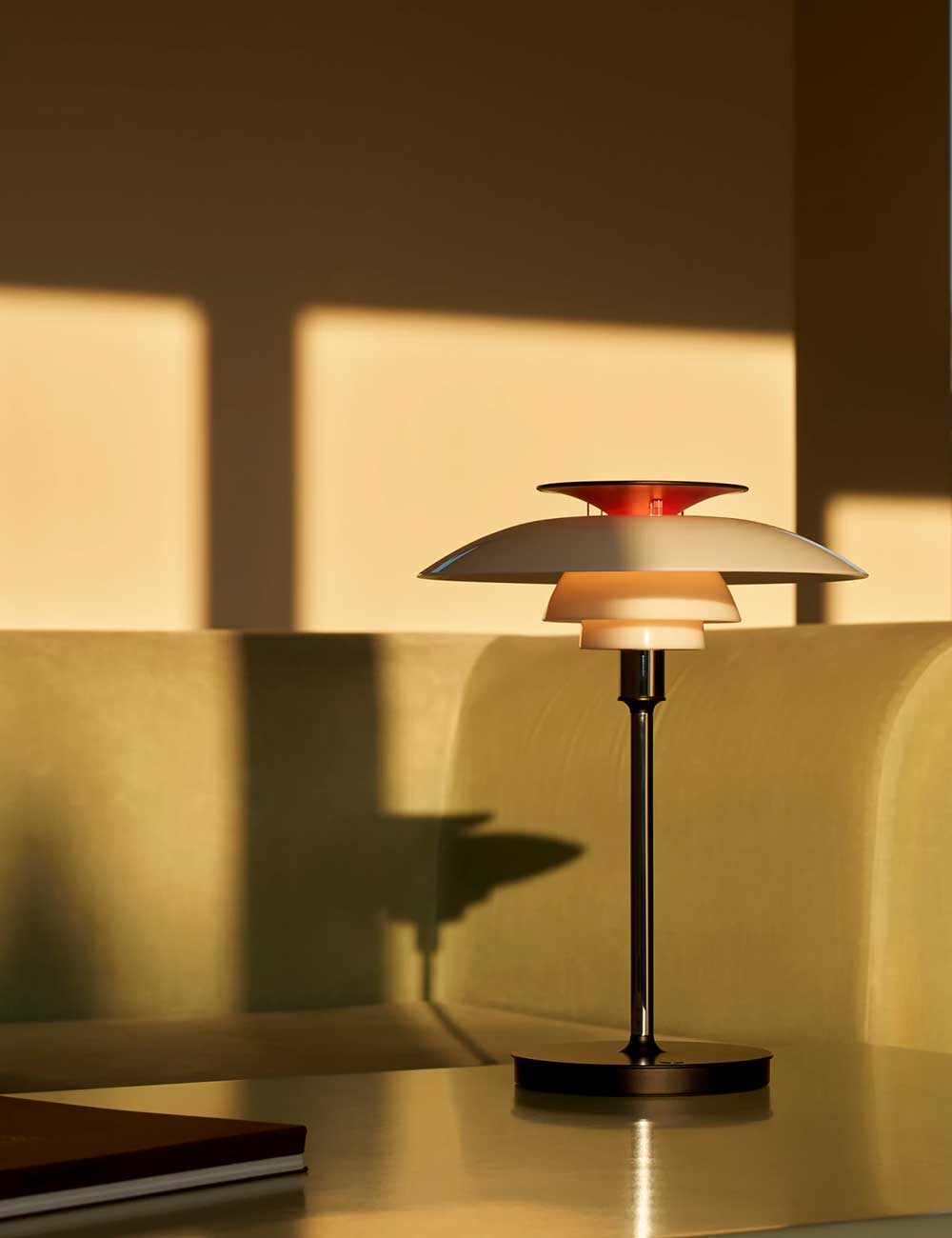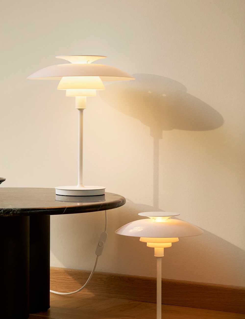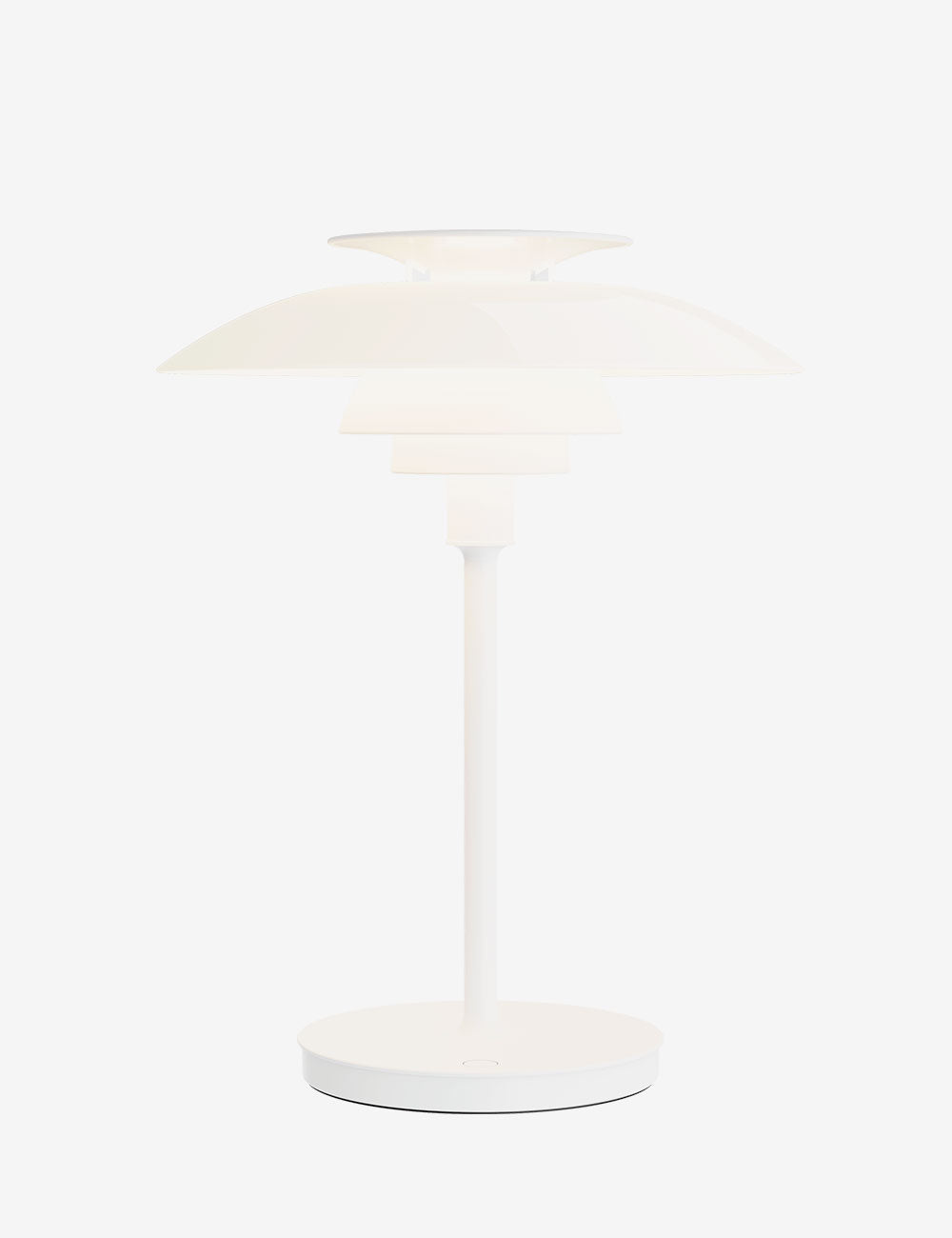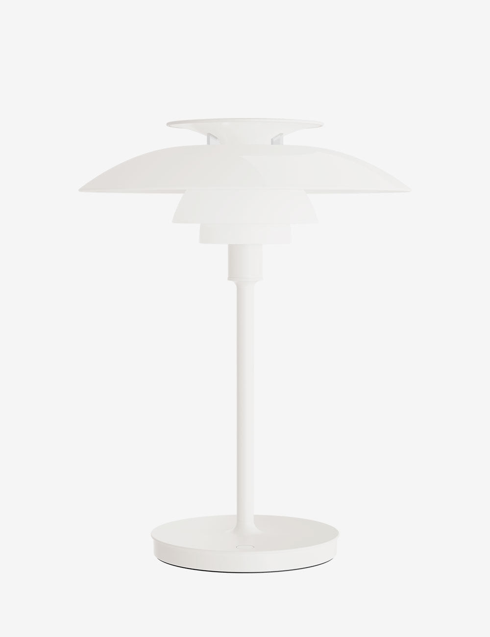 Esta versión portátil de la PH 80 es tanto funcional como estética, proporcionando una luz indirecta, cálida y difusa, ideal para hogares y entornos profesionales.