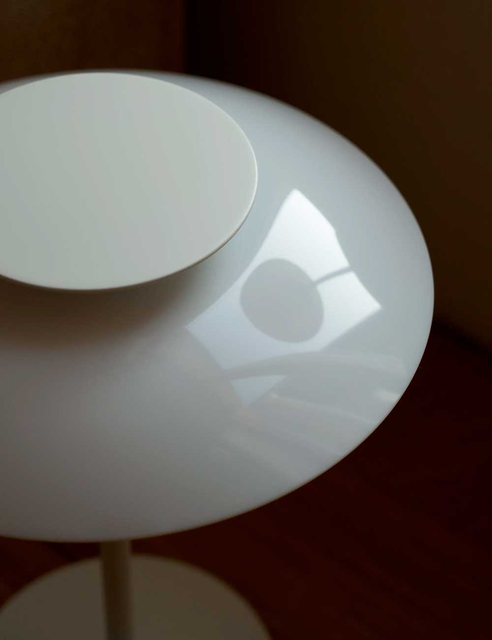 Su sistema multipantalla emite una luz difusa, reflejada y simétrica, dirigiendo la mayor parte hacia abajo para una iluminación ambiental confortable. Las pantallas acrílicas opalinas suavizan la luz, mientras que el reflector superior puede ser rojo, para un brillo cálido e intenso, o blanco, para un aspecto más limpio y elegante. La fuente de luz elegida influye en el tono final de la iluminación.