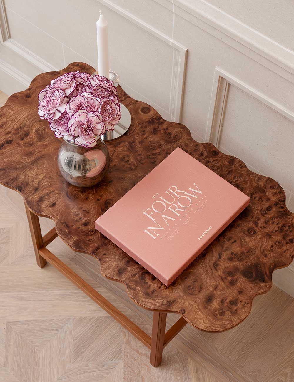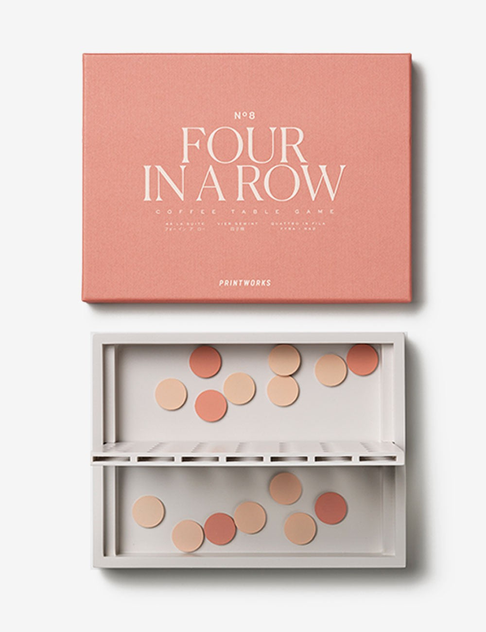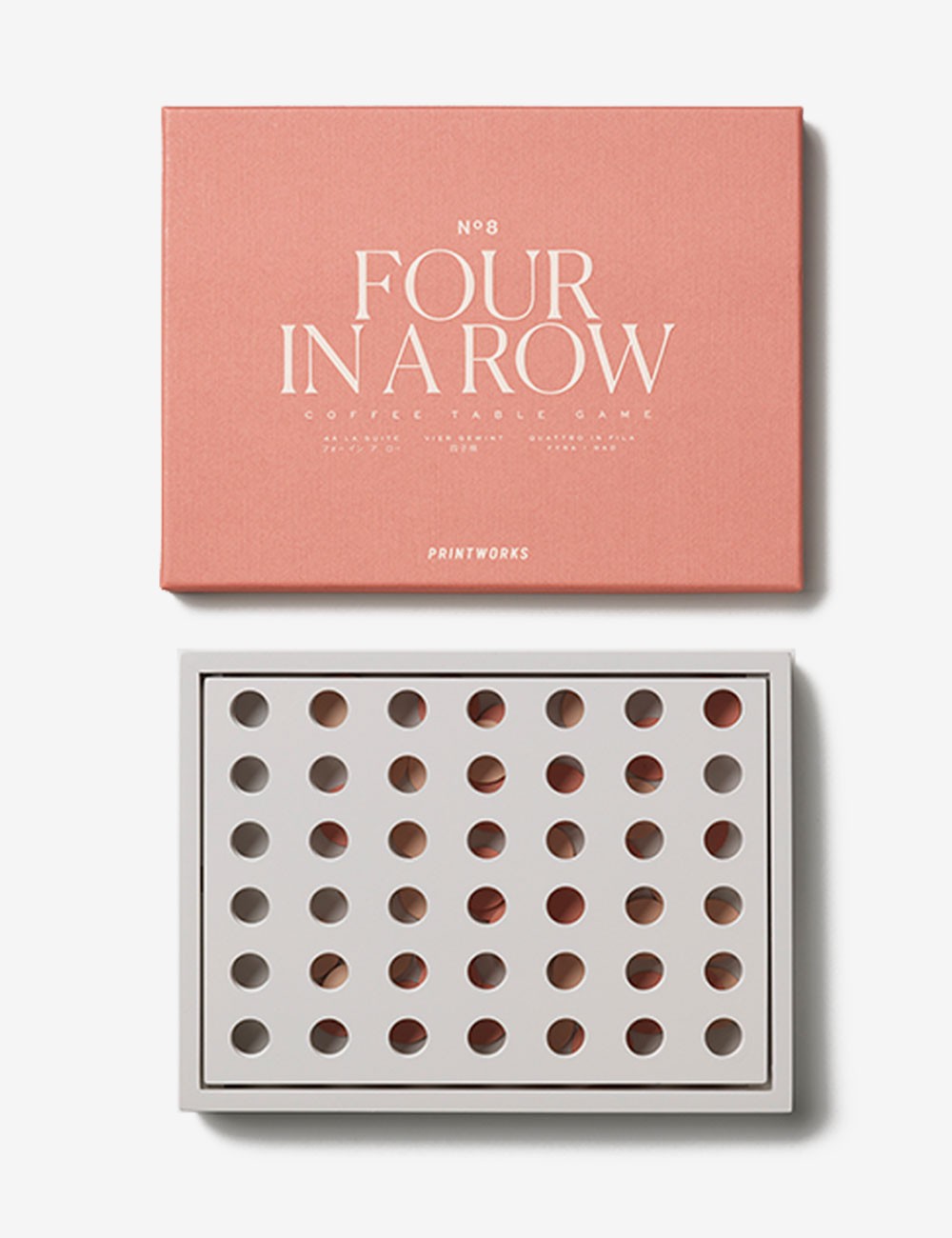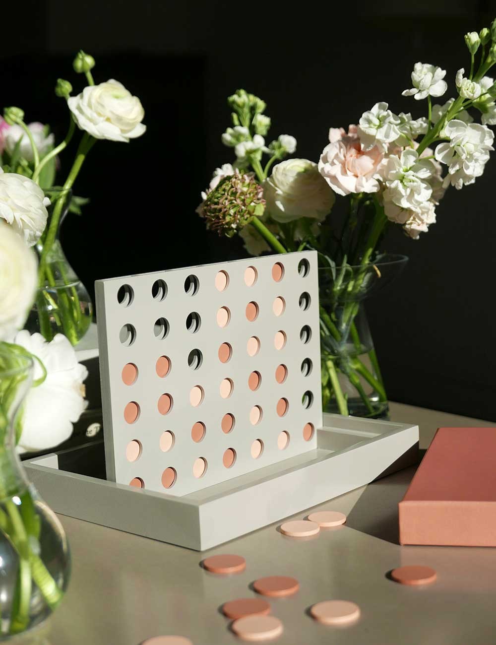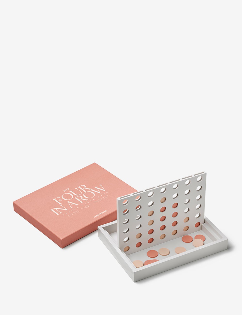 Con una suave combinación de colores rosa y gris, este cuatro en raya añade un toque de vibrante diversión a la decoración de cualquier hogar.