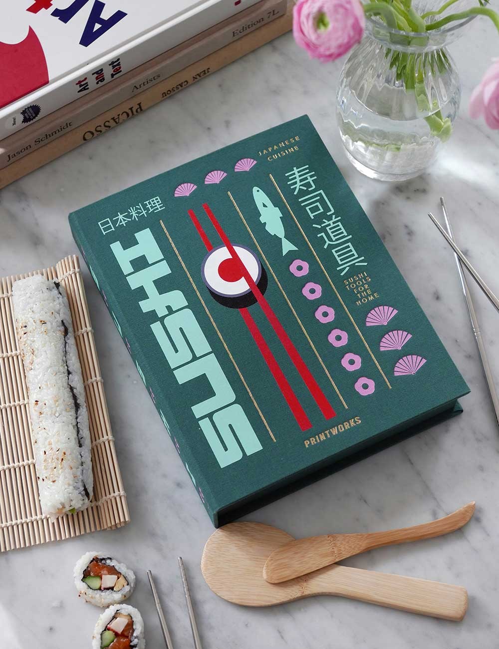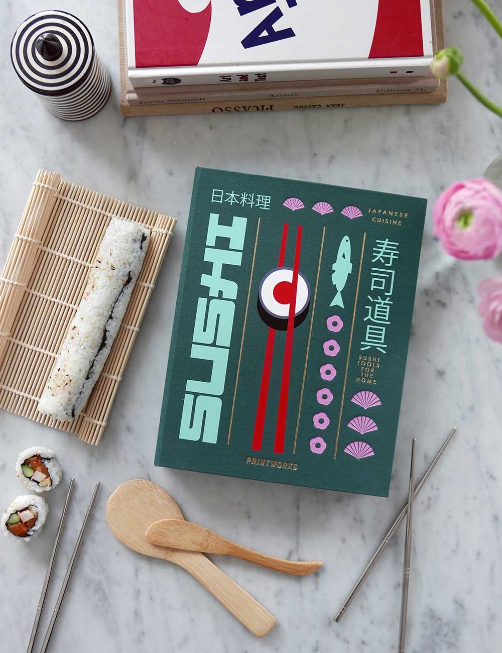 Este kit esencial para sushi se presenta en una elegante caja con forma de libro.