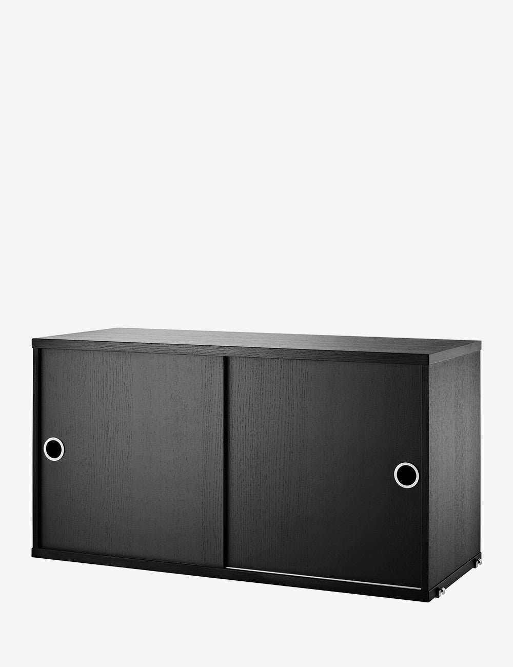 El armario con puertas correderas amplía las posibilidades de almacenamiento de la serie String System.