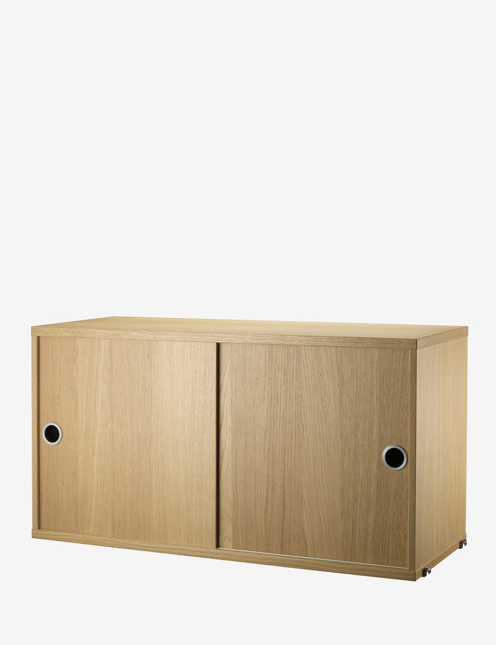 El armario con puertas correderas amplía las posibilidades de almacenamiento de la serie String System.