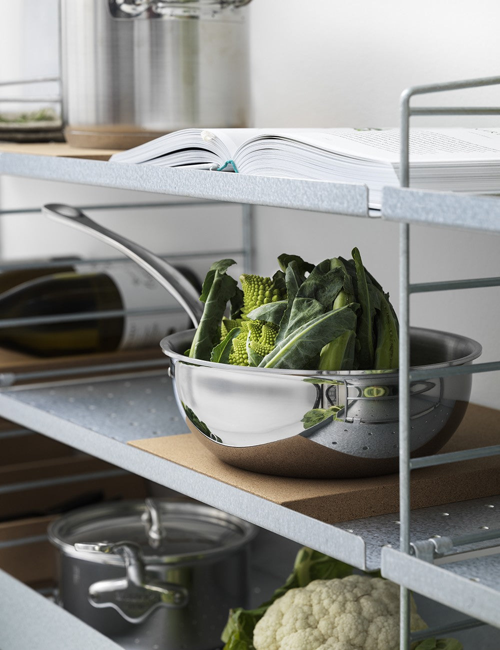 Úsala para apoyar sartenes y ollas calientes de una forma segura o con los separadores de la misma línea para crear un practico organizador de cubiertos o utensilios.