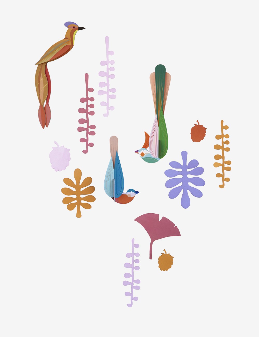 Da un toque divertido a cualquier estancia con este set de aves y hojas 3D.