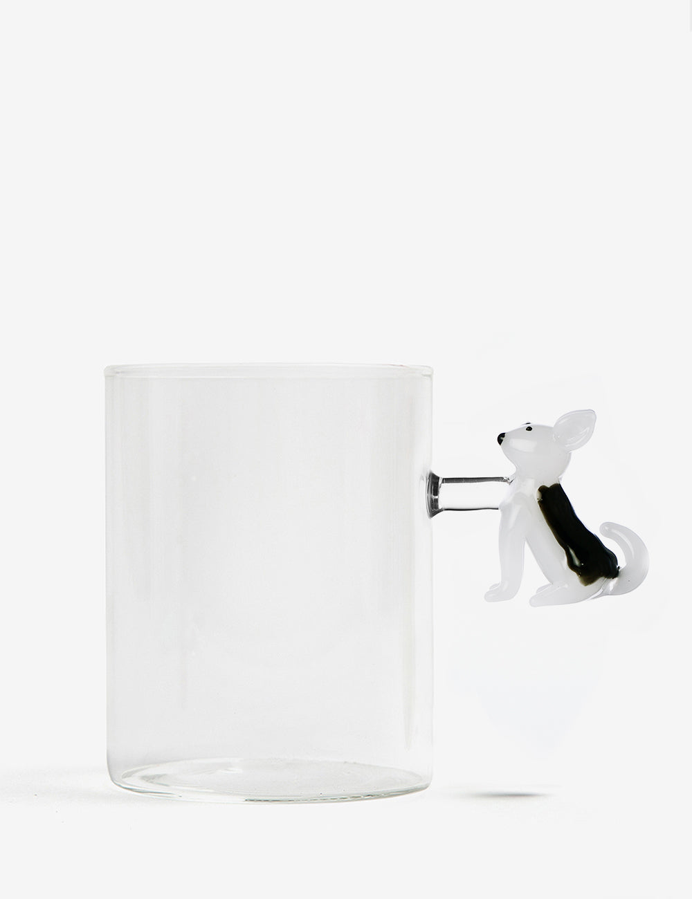 Cada pieza se produce artesanalmente, combinando el cristal transparente con figuras de colores vibrantes que evocan la alegría y el carácter lúdico de los perros.
