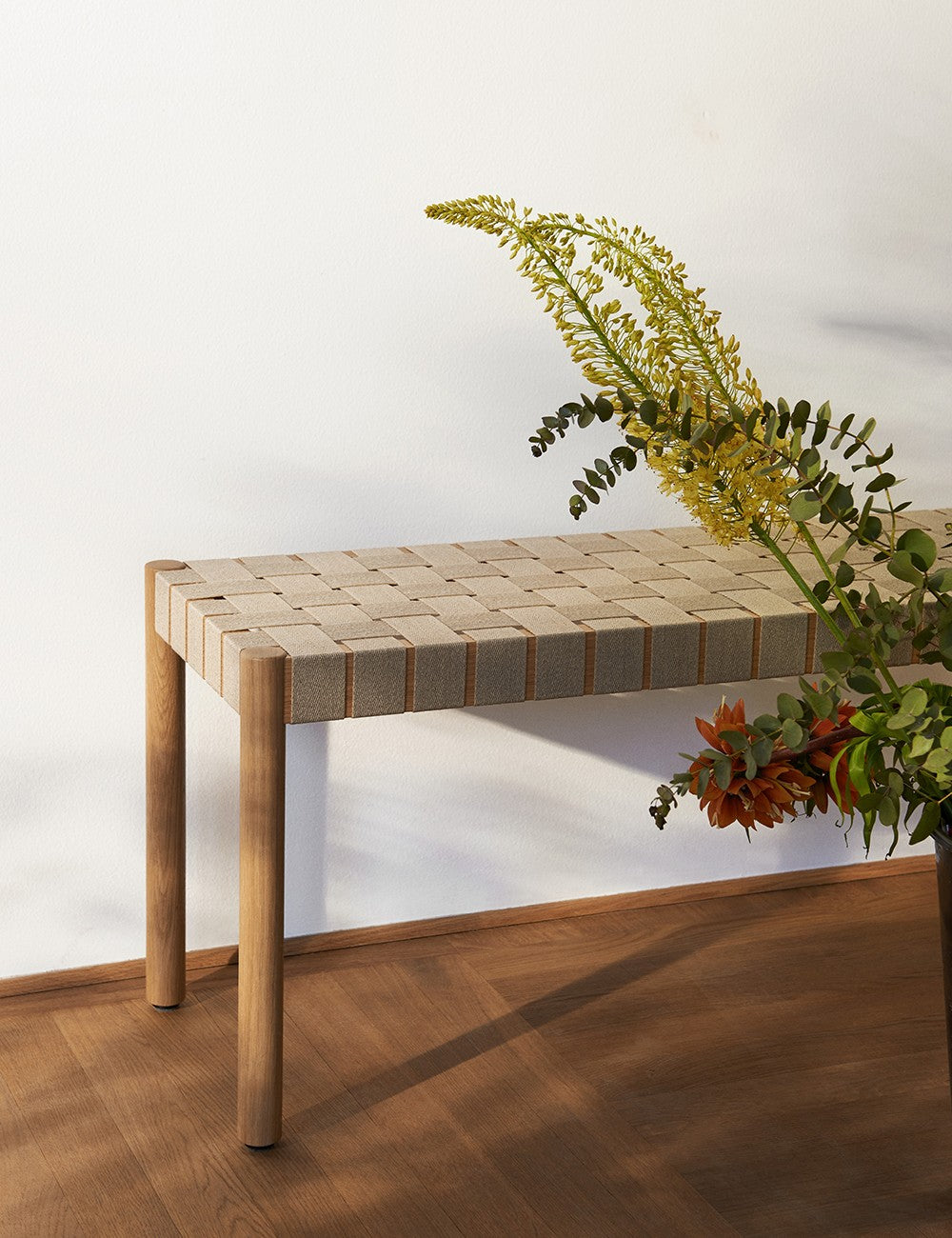 Diseñadas por Thau & Kallio para &Tradition, Betty comprende una serie de taburetes, sillas y bancos realizados en madera maciza con asientos palmeados en lino natural.