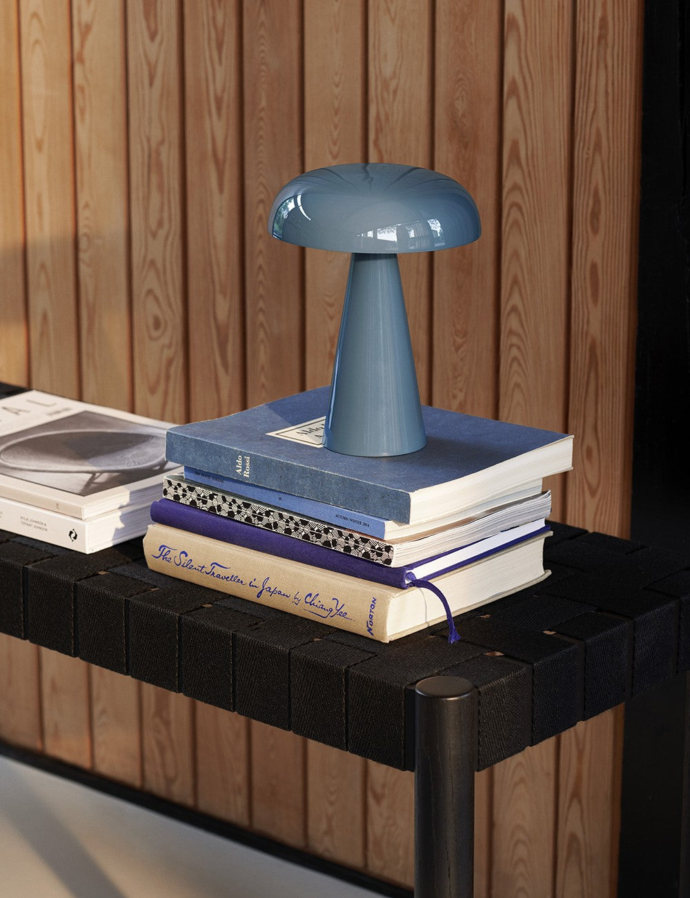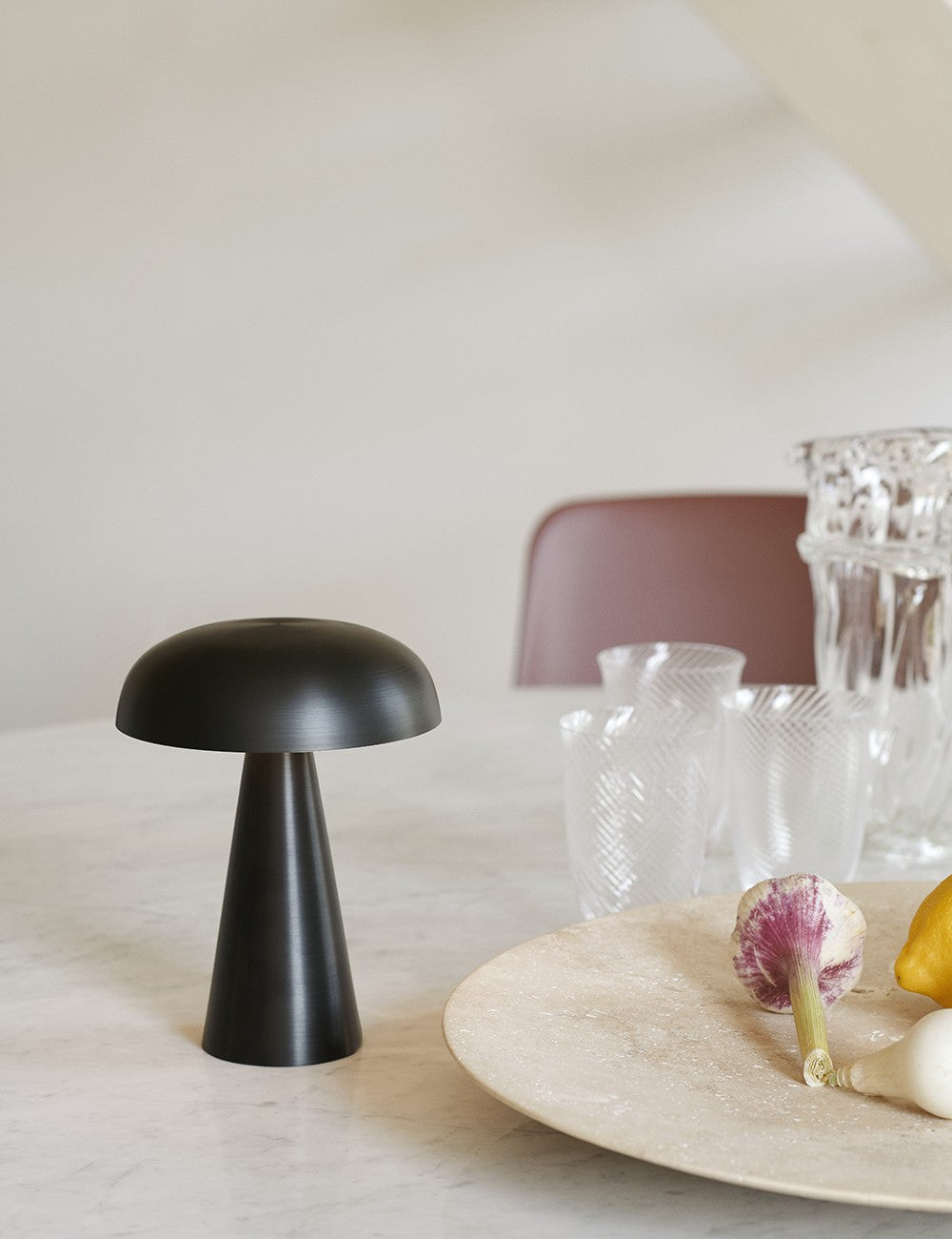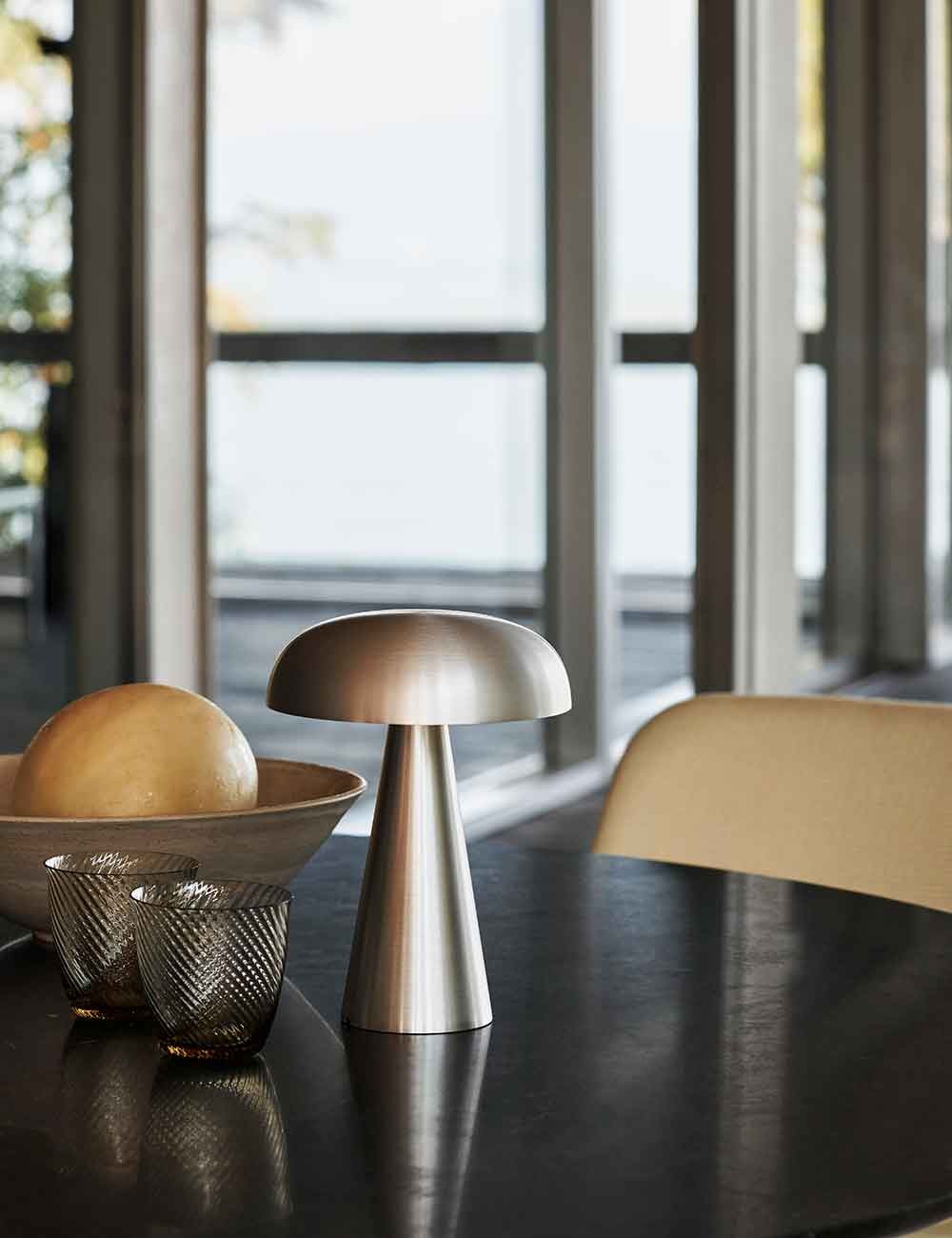 Diseñada por Space Copenhague para &Tradition, Como, es una pequeña lámpara portátil realizada en aluminio anodizado.