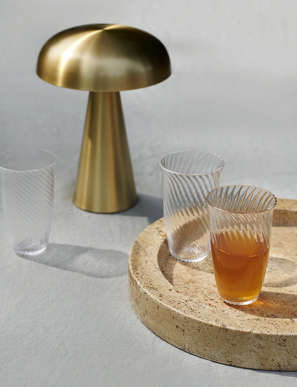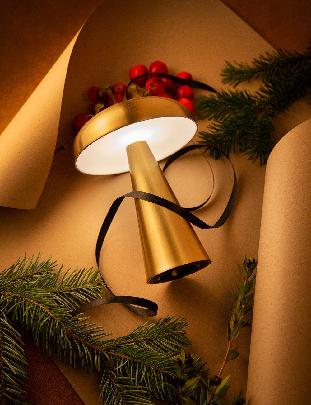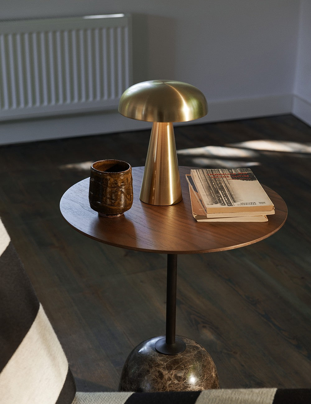 Diseñada por Space Copenhague para &Tradition, Como, es una pequeña lámpara portátil realizada en aluminio anodizado.