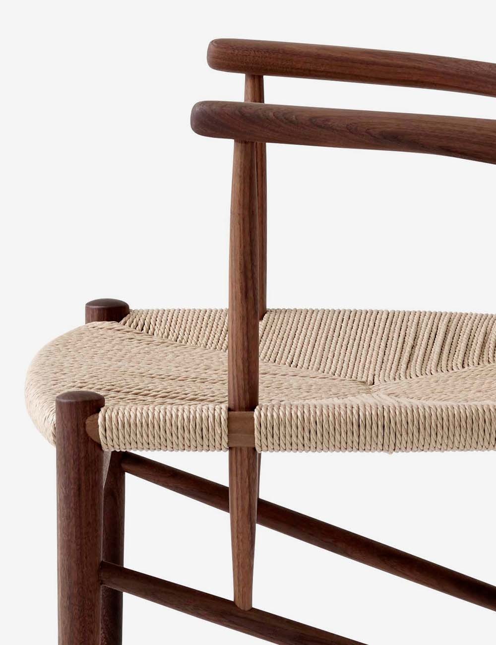 Drawn se realiza en madera maciza torneada y fresada. El asiento está tejido manualmente con más de 100 metros de cordón de papel natural.