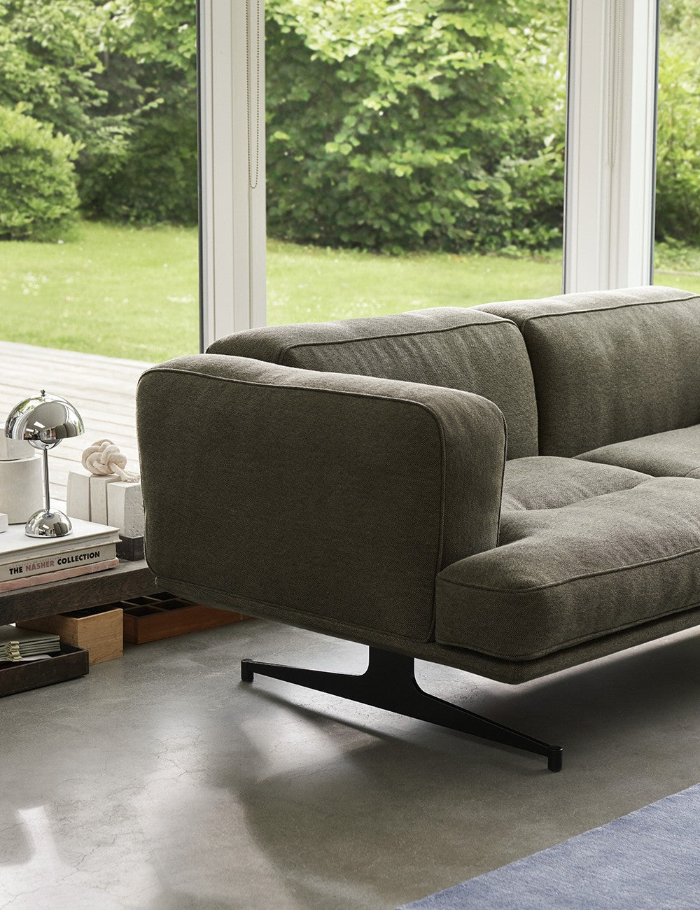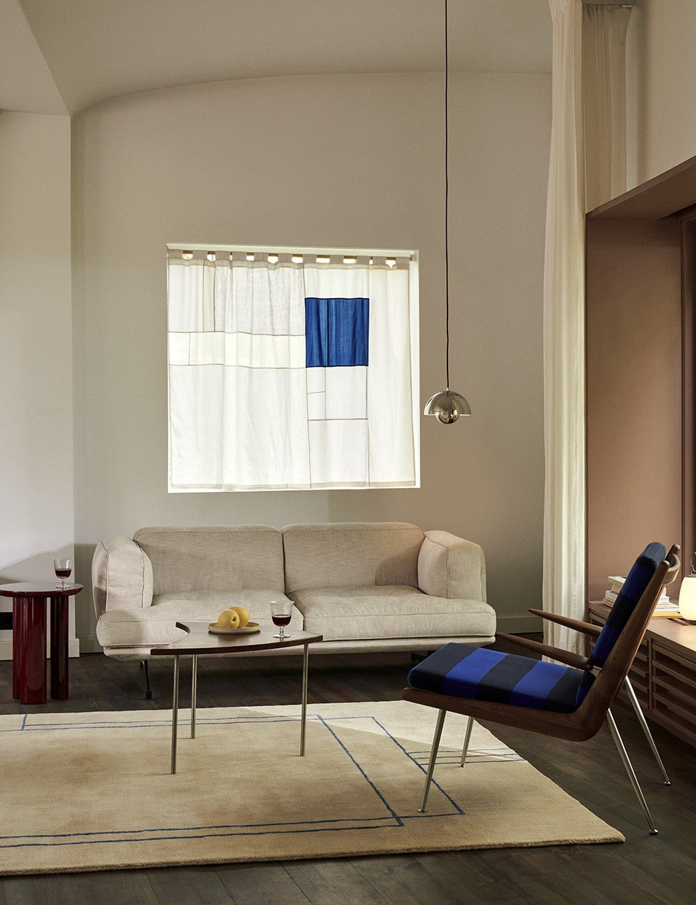 Con esta visión en mente, crearon Inland, un sofá bajo y profundo con brazos altos.