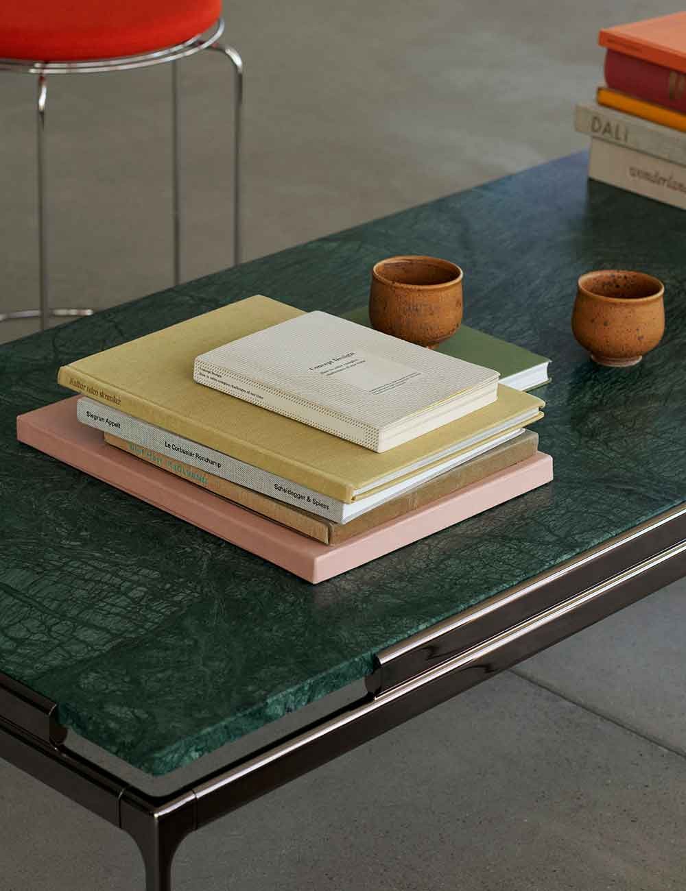 En Sett, el mármol, el vidrio y el cromo oscuro se combinan en un sorprendente entorno de mesas, que reflejan el lenguaje de diseño ecléctico de Luca Nichetto y su afinidad por la materialidad.
