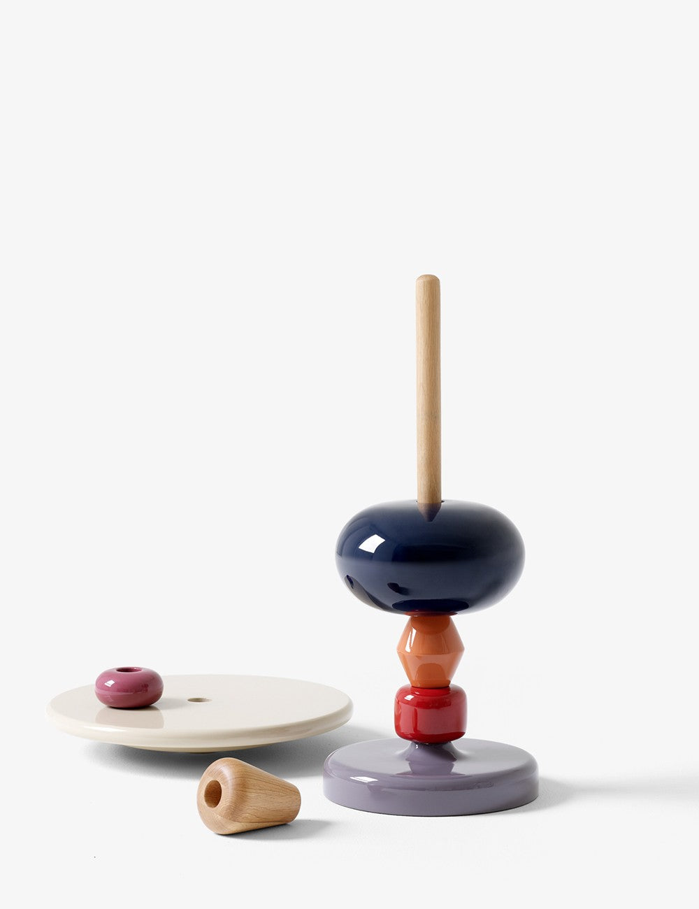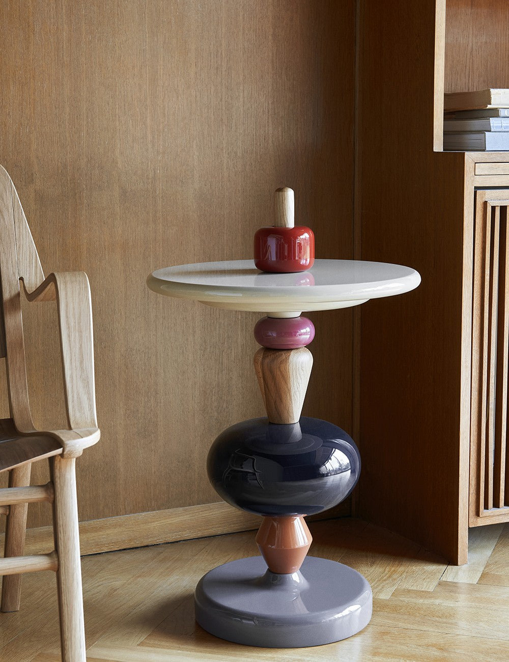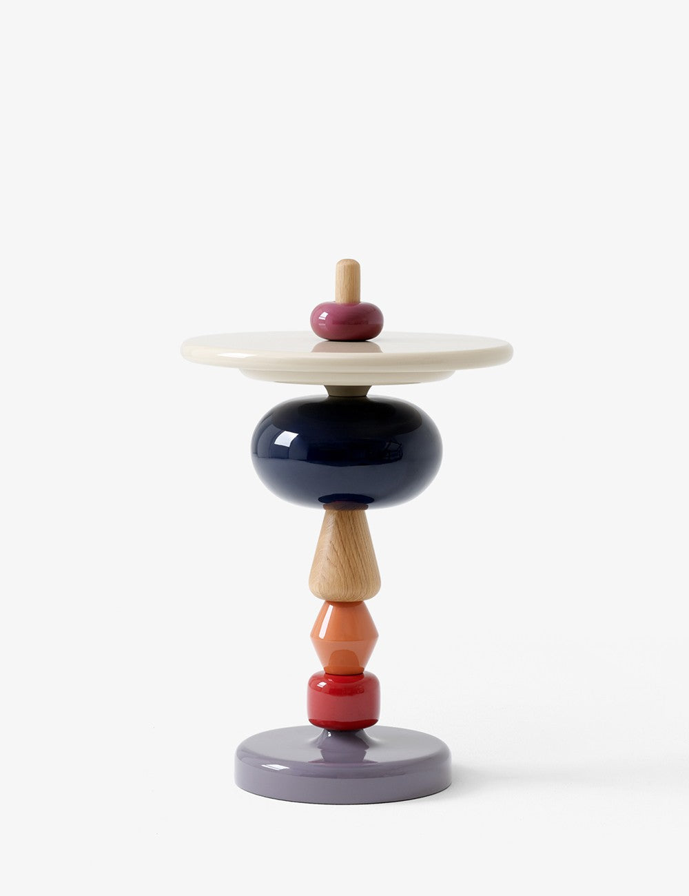 Mia Hamborg se inspiró en uno de sus juguetes favoritos de su propia infancia, de ahí que las diferentes piezas de esta escultórica mesa puedan ser posicionadas en el orden que más nos convenga.