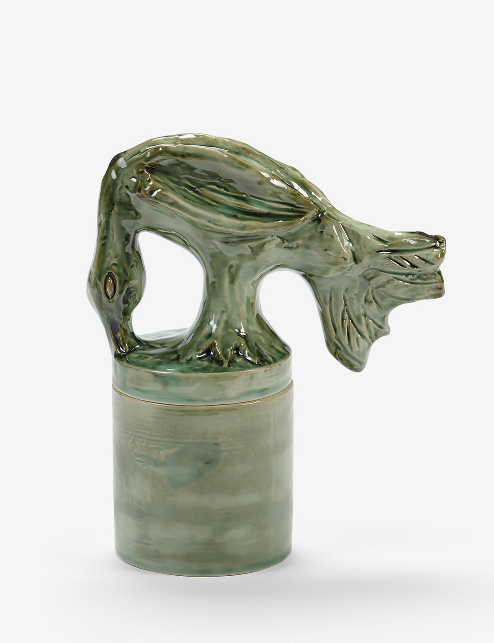 • Recipientes de cerámica con tapa, decorados con formas y motivos naturales.