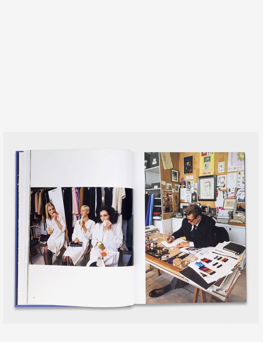 El libro ofrece una exploración exhaustiva y polifacética de la vida de una casa de alta costura: desde retratos informales y atmosféricos de Yves Saint Laurent trabajando en su estudio, diseñando y creando, hasta el trabajo entre bastidores de las «petites mains» en los ateliers, el ejército de hábiles artesanos cuya actividad rara vez se documenta. También aparecen las modelos de la casa, famosas en todo el mundo, captadas durante las pruebas previas a la colección en los grandes salones de la casa y en los electrizantes momentos entre bastidores antes de los desfiles.