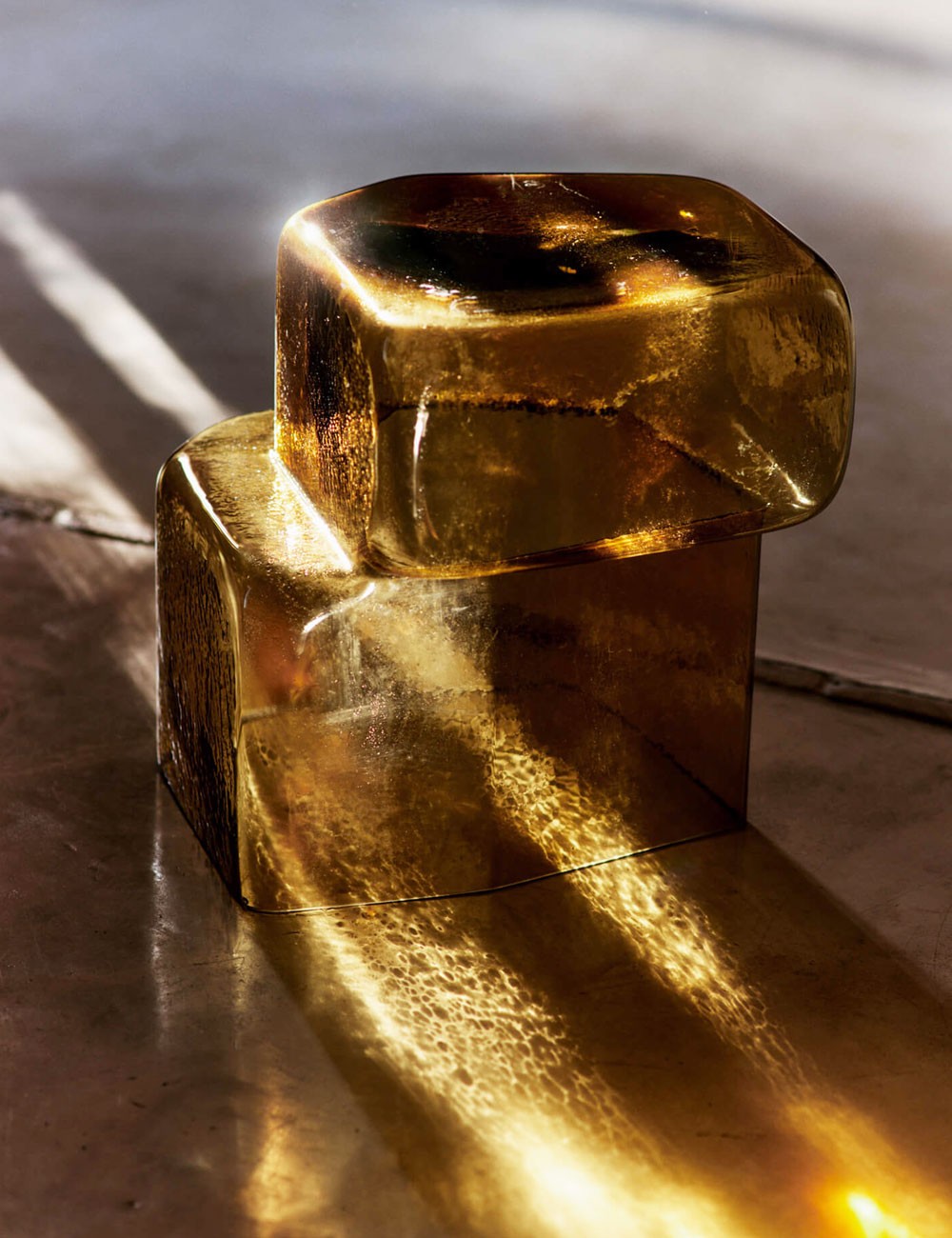 Feita de vidro soprado reciclado e fabricada com um molde de tijolo.