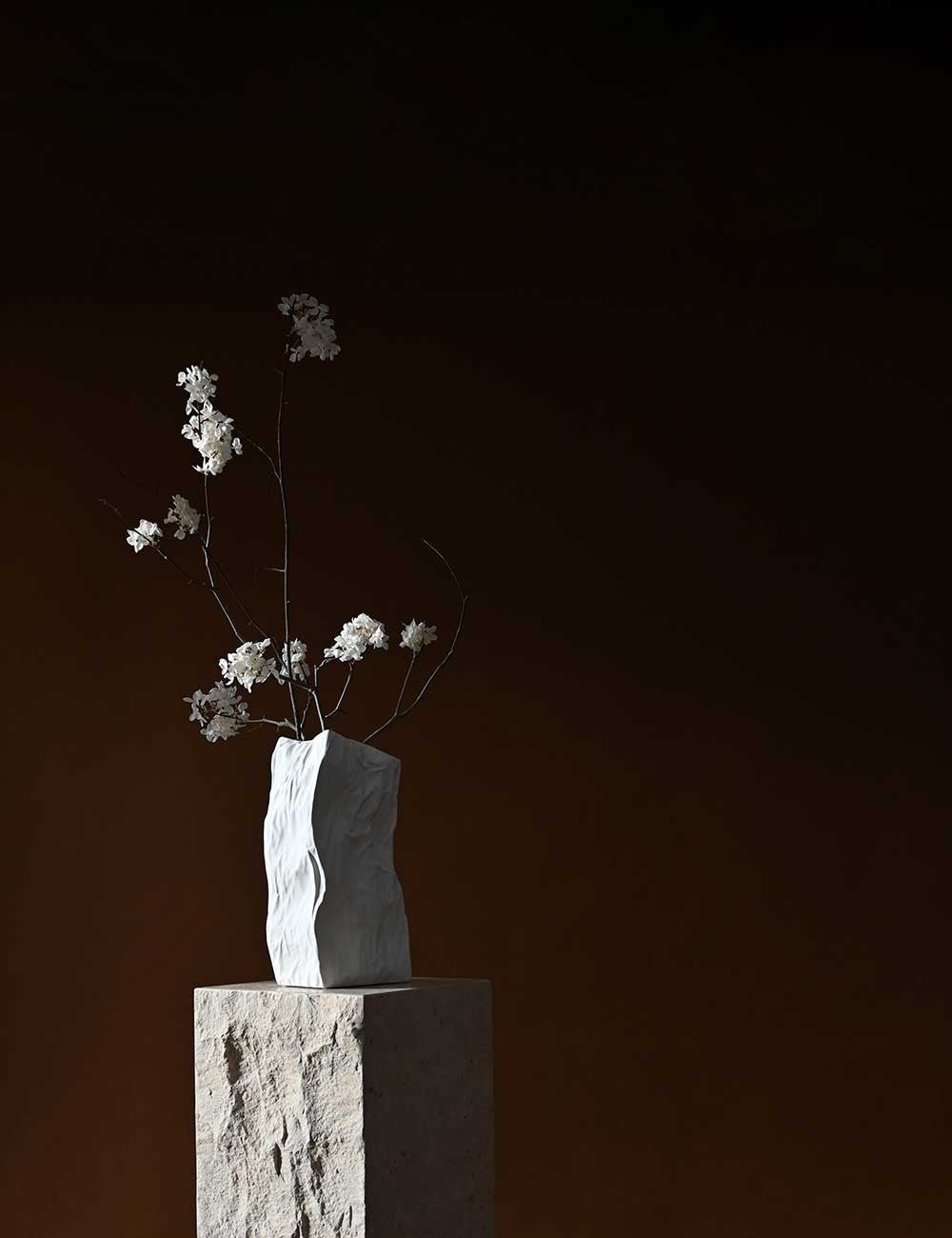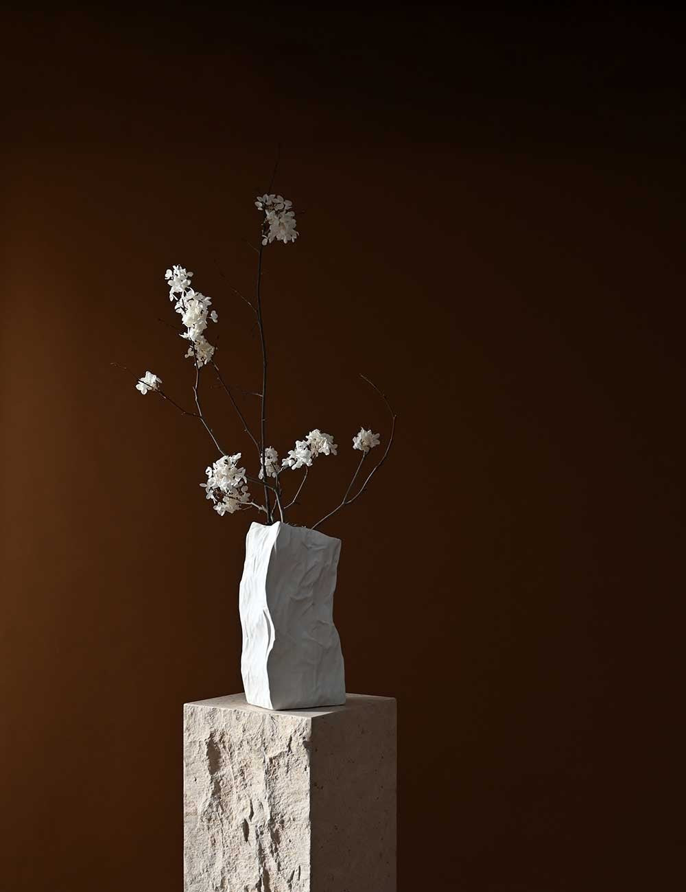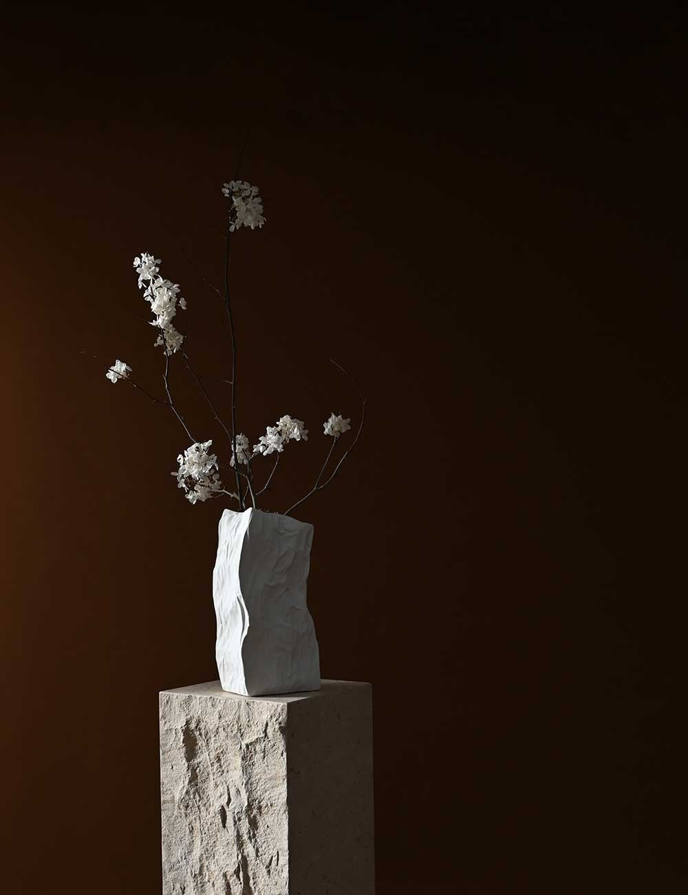A jarra Kami tem uma superfície irregular com curvas e dobras, dando-lhe um aspeto orgânico e intemporal.
