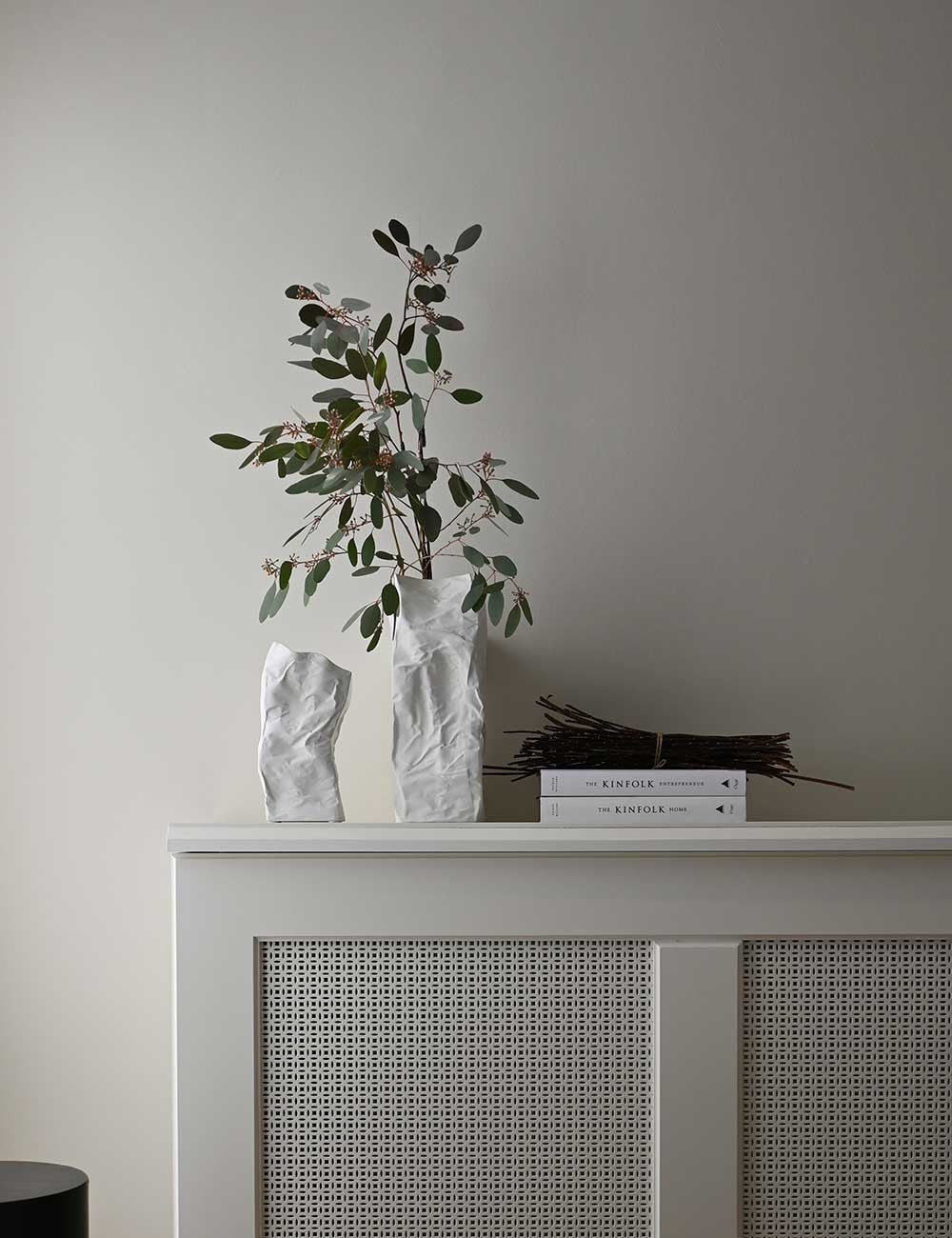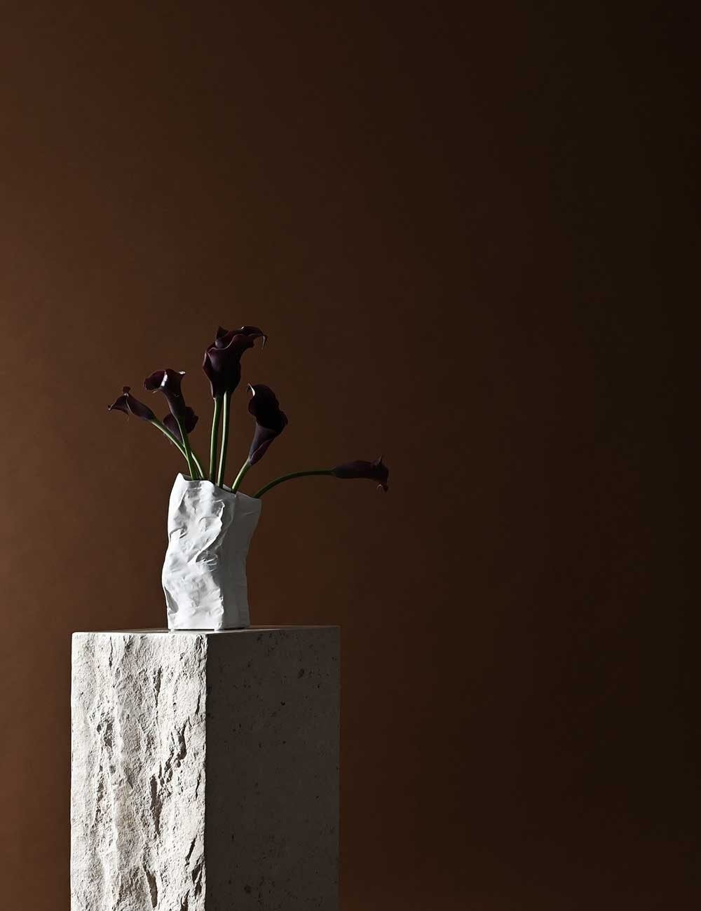 A jarra Kami tem uma superfície irregular com curvas e dobras, dando-lhe um aspeto orgânico e intemporal.