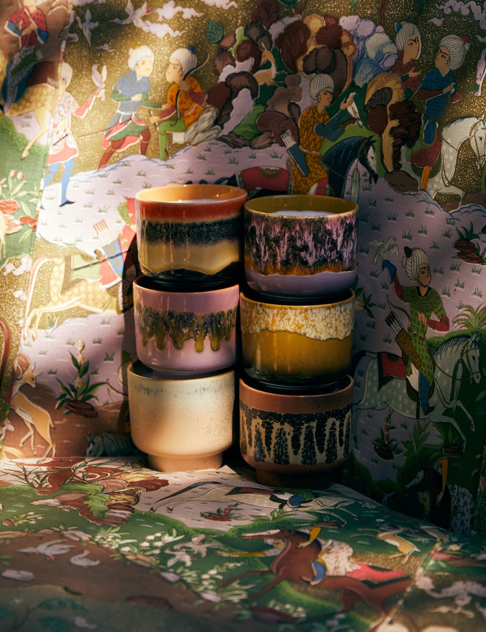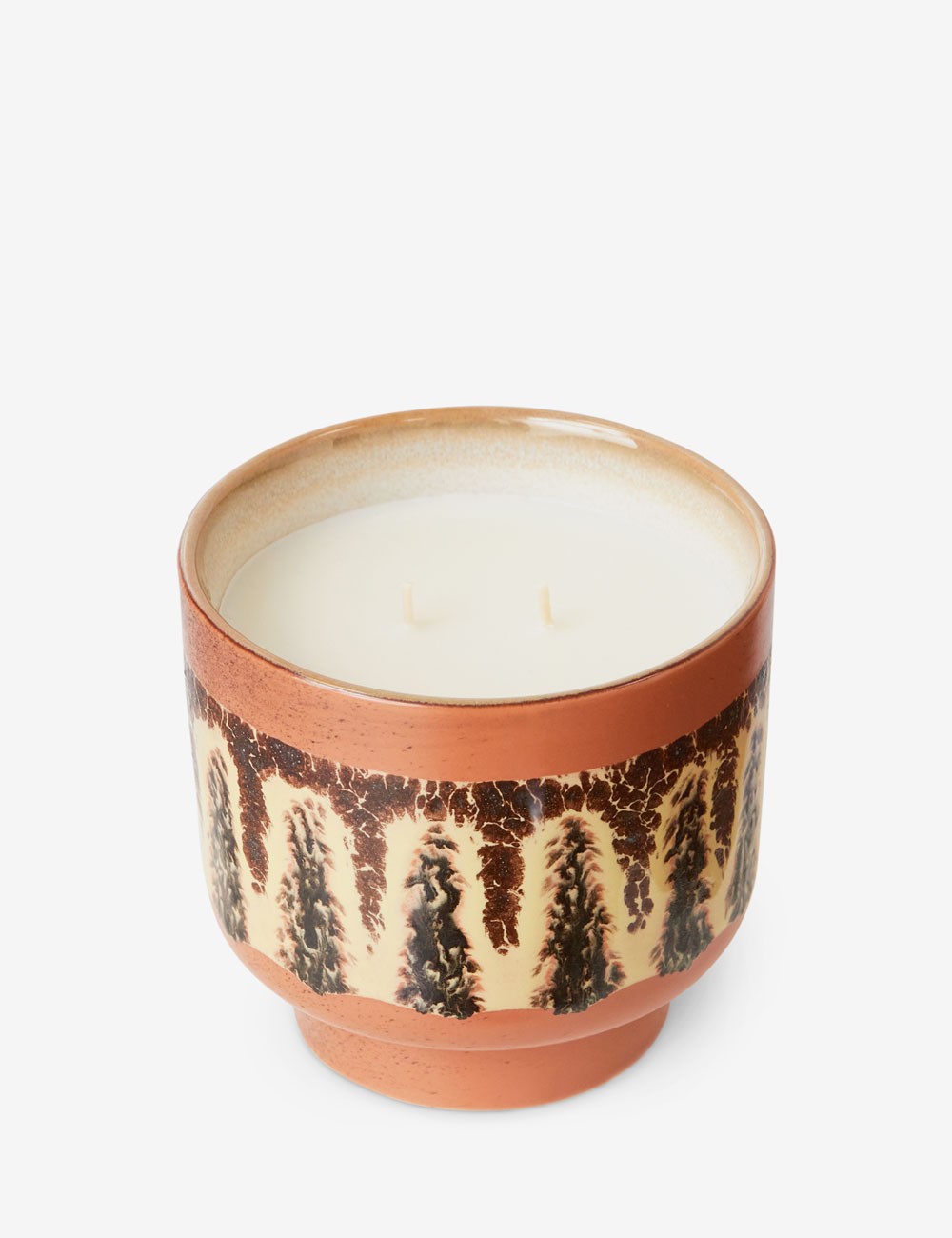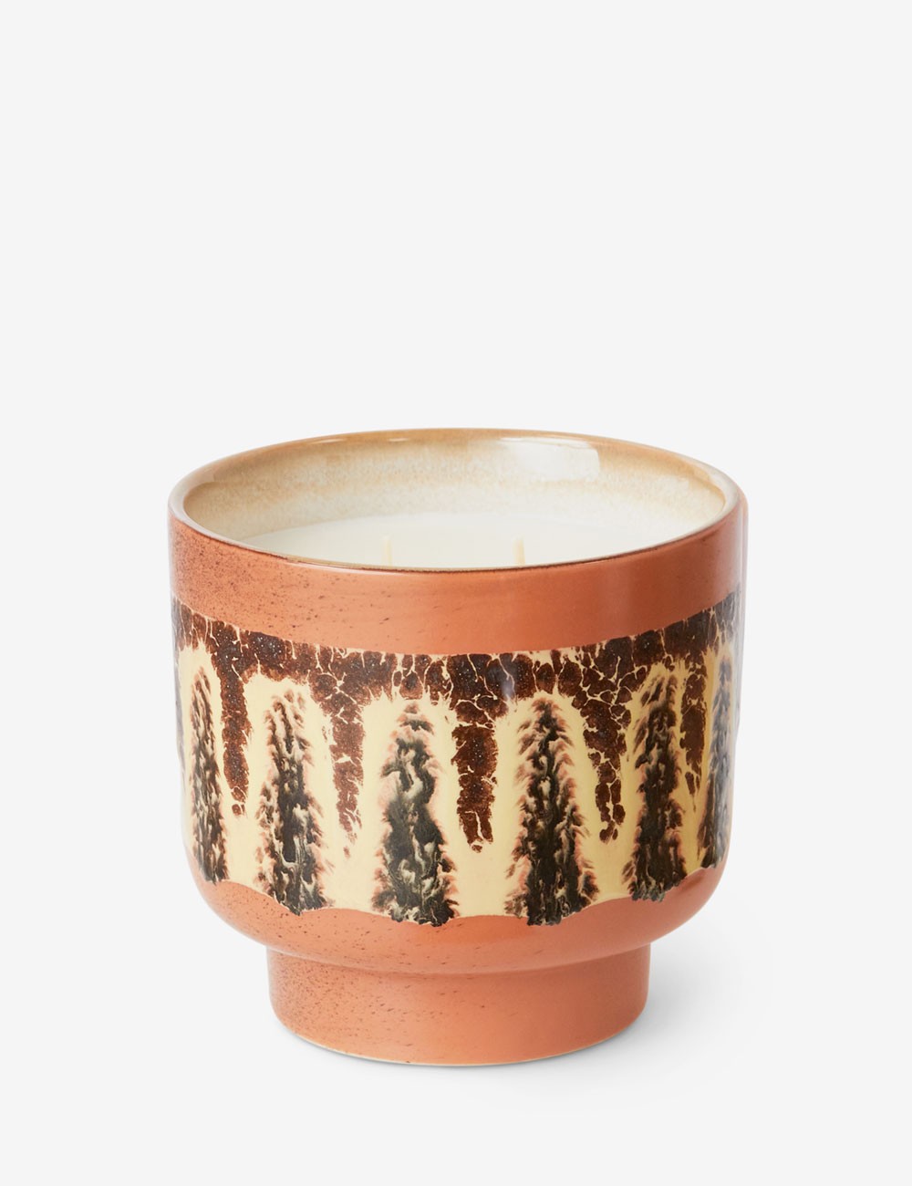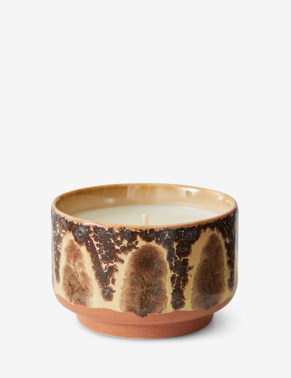 Esta vela colorida e perfumada é feita de uma mistura de cera vegetal, de soja e tradicional com um pavio de algodão e é apresentada num recipiente de cerâmica de estilo retro.