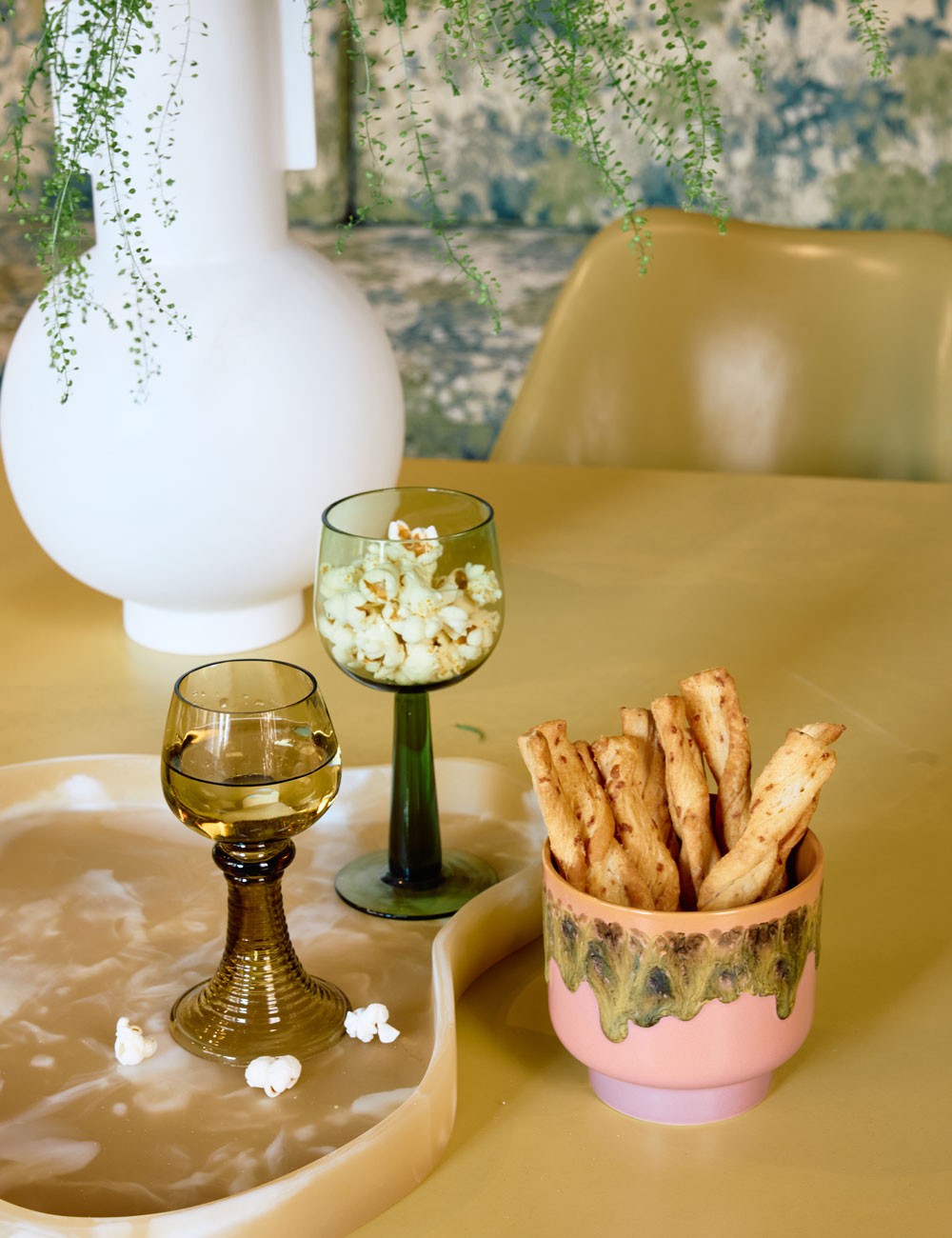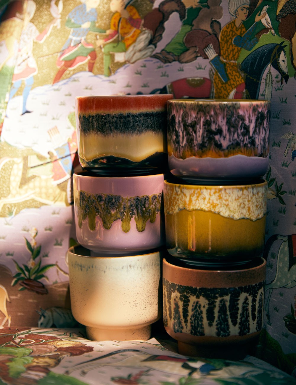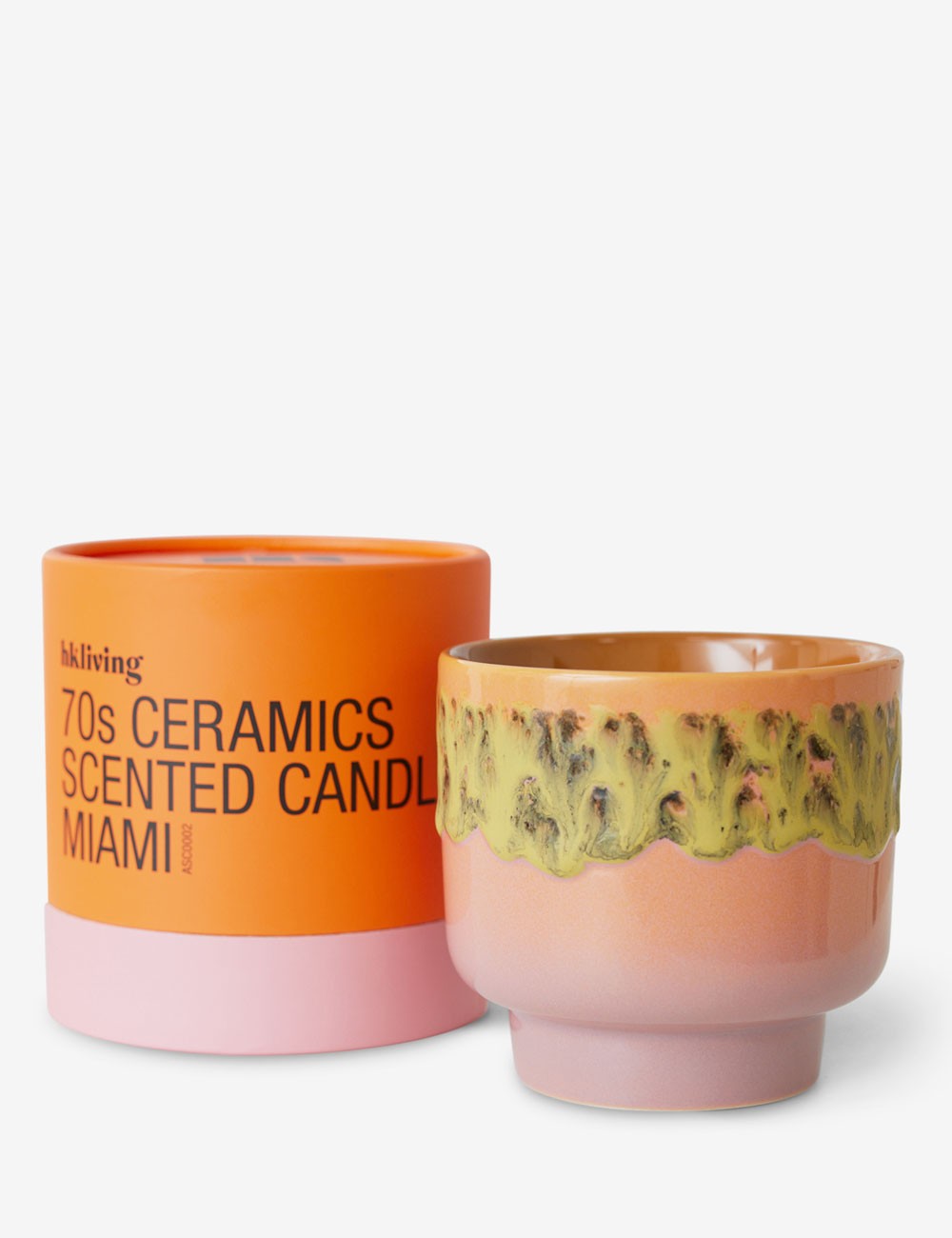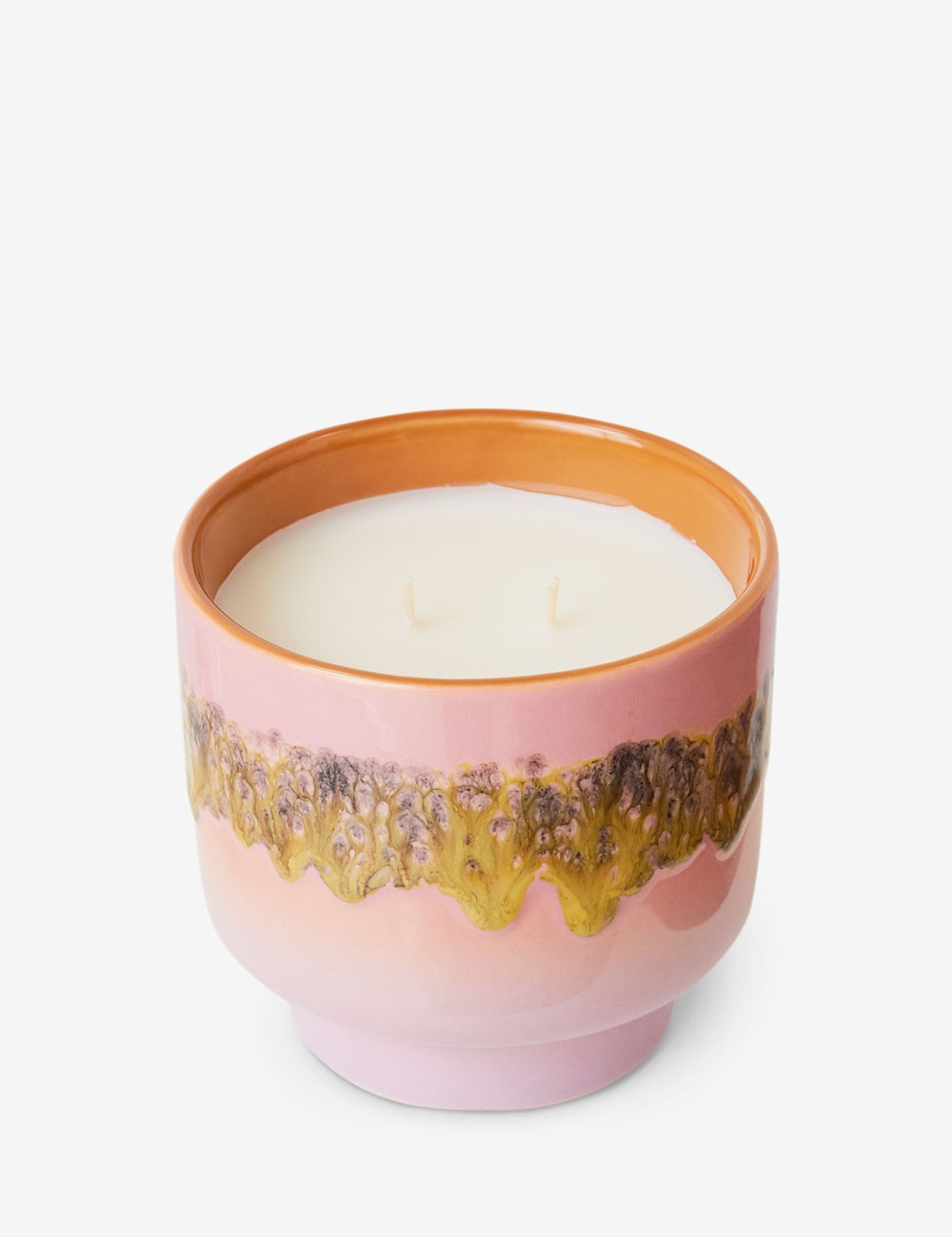 Esta vela colorida e perfumada é feita de uma mistura de cera vegetal, de soja e tradicional com um pavio de algodão e é apresentada num recipiente de cerâmica de estilo retro.