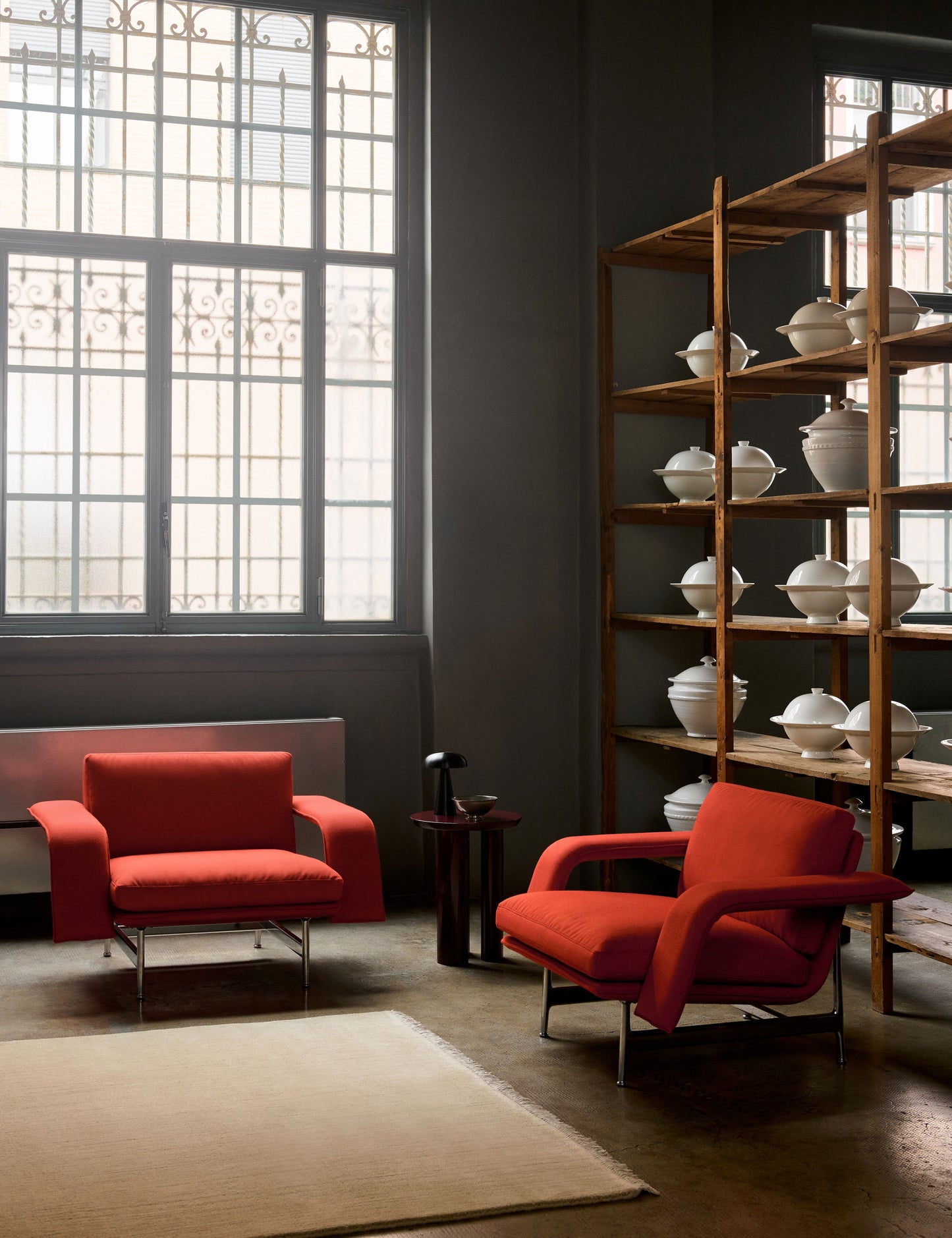 A forma de Meantime, com braços largos e esguios, faz lembrar o mobiliário que se encontra nos espaços liminares das salas de espera dos transportes, peças muitas vezes criadas por arquitectos e designers para se misturarem discretamente no seu ambiente, proporcionando ao mesmo tempo conforto aos viajantes ou a quem está de passagem.