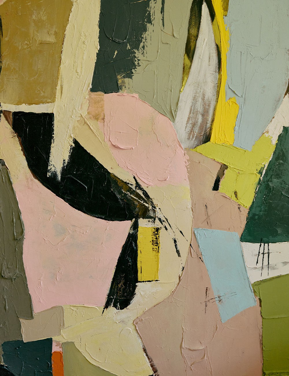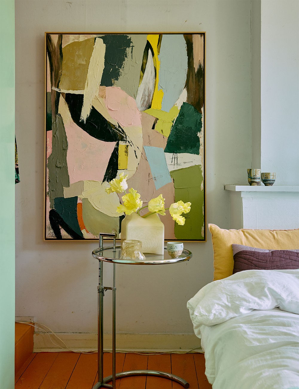 Com uma presença marcante e um tom suave, esta obra de grande formato trabalha com pinceladas curtas sobre uma paleta de cores suaves para criar uma paisagem texturizada e expressiva que convida o olhar a explorar. A sua escala generosa preenche paredes abertas e traz uma calma criativa que harmoniza com interiores contemporâneos e intemporais, adicionando profundidade sem saturar o espaço.