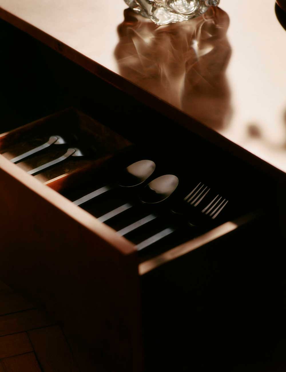 su veta arremolinada aporta profundidad y una calidez visual notable. El cajón oculto ofrece un espacio discreto para guardar objetos del día a día y mantener el salón sereno y despejado. Una pieza funcional y sofisticada que eleva el ambiente sin perder practicidad.
