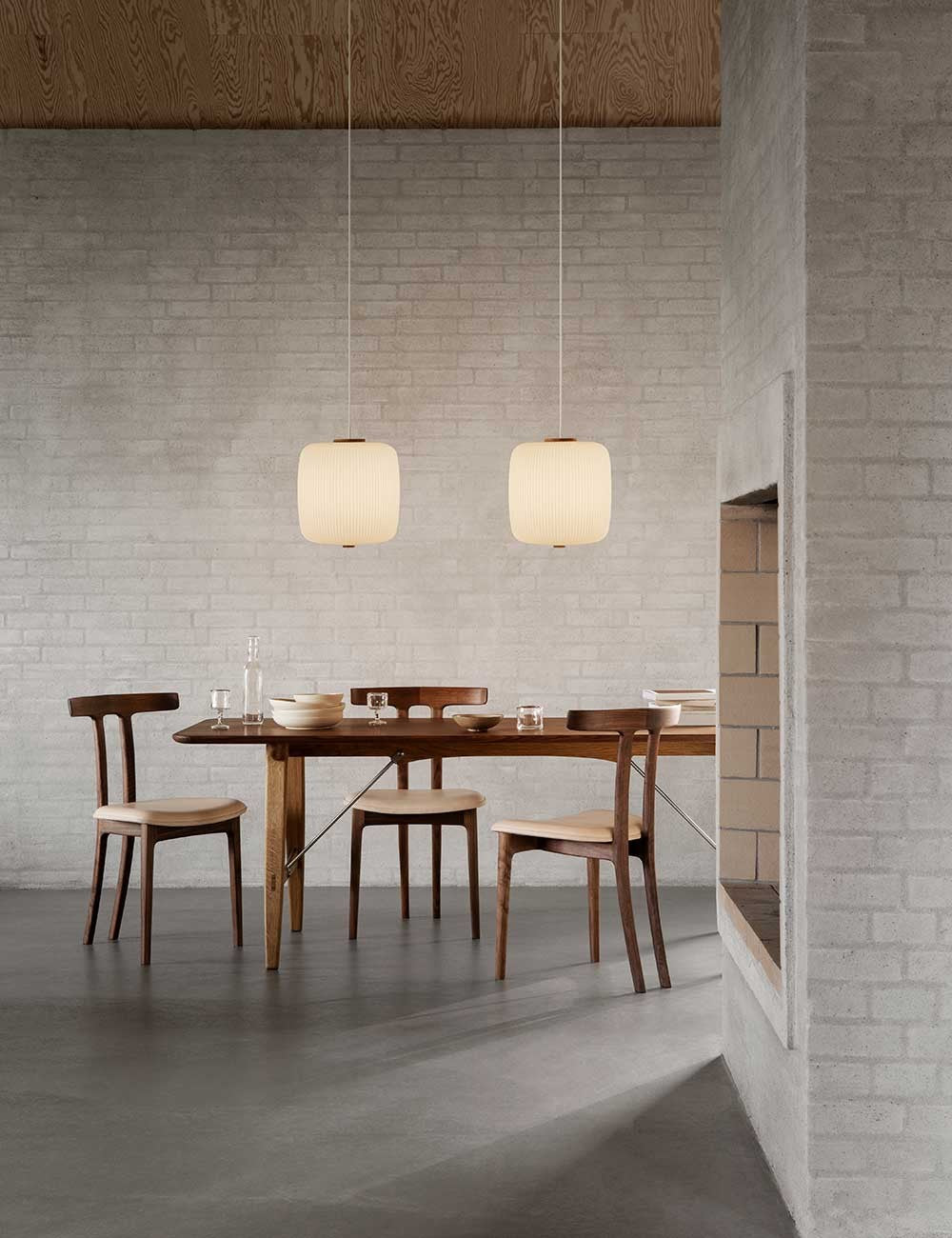 A BM1160 é ligeiramente estreita na parte superior, o que a torna adequada para espaços mais pequenos e permite reuniões sociais mais íntimas. Além disso, a mesa foi concebida para uma utilização frequente, com cantos arredondados e arestas em madeira maciça, revelando a paixão de Mogensen por um design democrático e acessível.