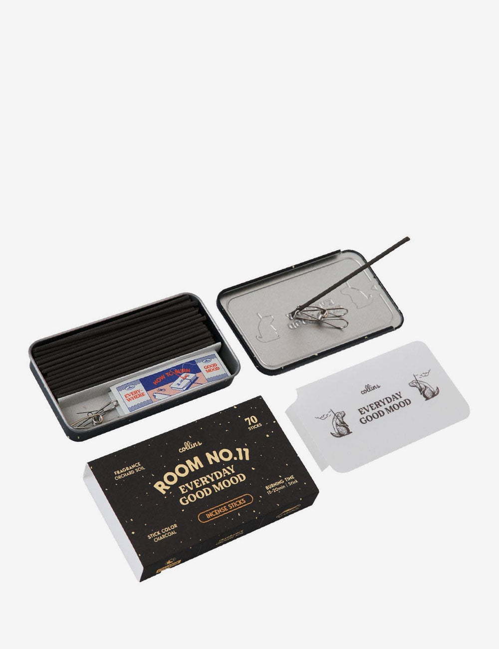 Este conjunto de incenso inclui um tabuleiro, dois suportes para incenso e 70 varetas.