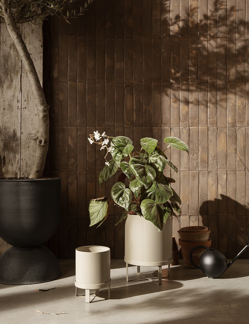 Inspirado en la arquitectura de Bauhaus, Ferm, ha conseguido un clásico muy actual en este macetero metálico. Realizadas en acero lacado puede ser utilizado tanto en interior como en exterior. Compuesta de dos piezas y con un orificio en la macetera que permite plantar directamente en ella el plato ligeramente elevado da el toque sofisticado a toda la composición.