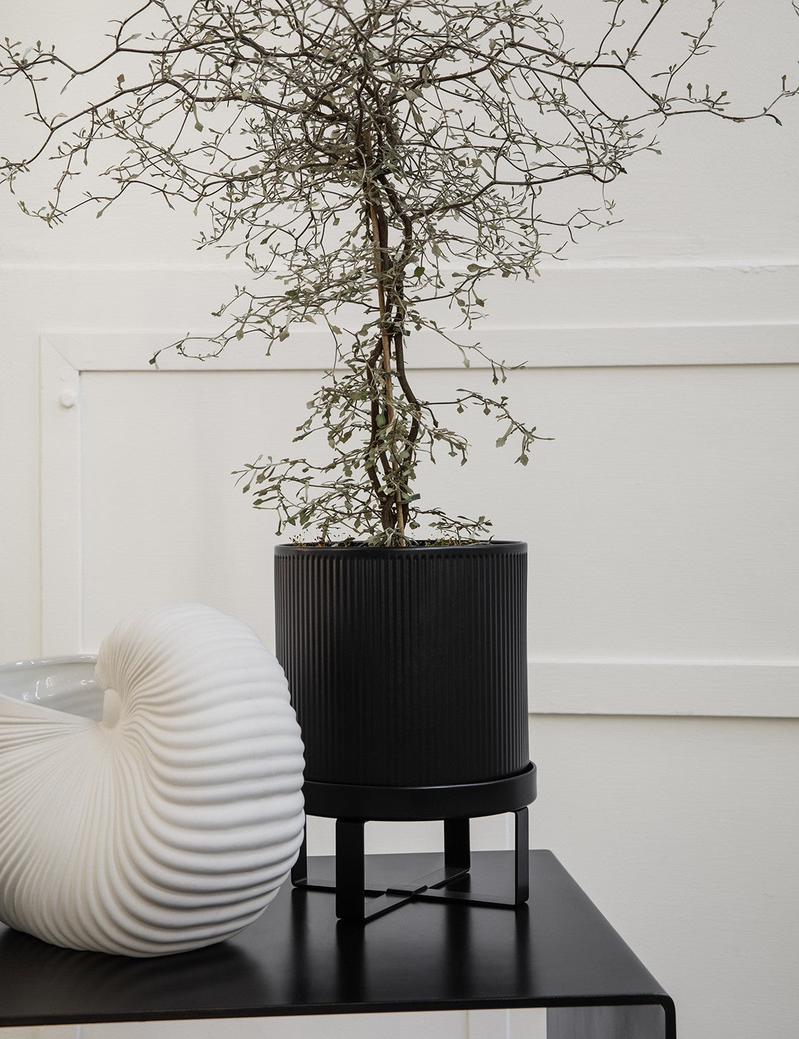 Inspirado en la arquitectura de Bauhaus, Ferm, ha conseguido un clásico muy actual en este macetero metálico. Realizadas en acero lacado puede ser utilizado tanto en interior como en exterior. Compuesta de dos piezas y con un orificio en la macetera que permite plantar directamente en ella el plato ligeramente elevado da el toque sofisticado a toda la composición.