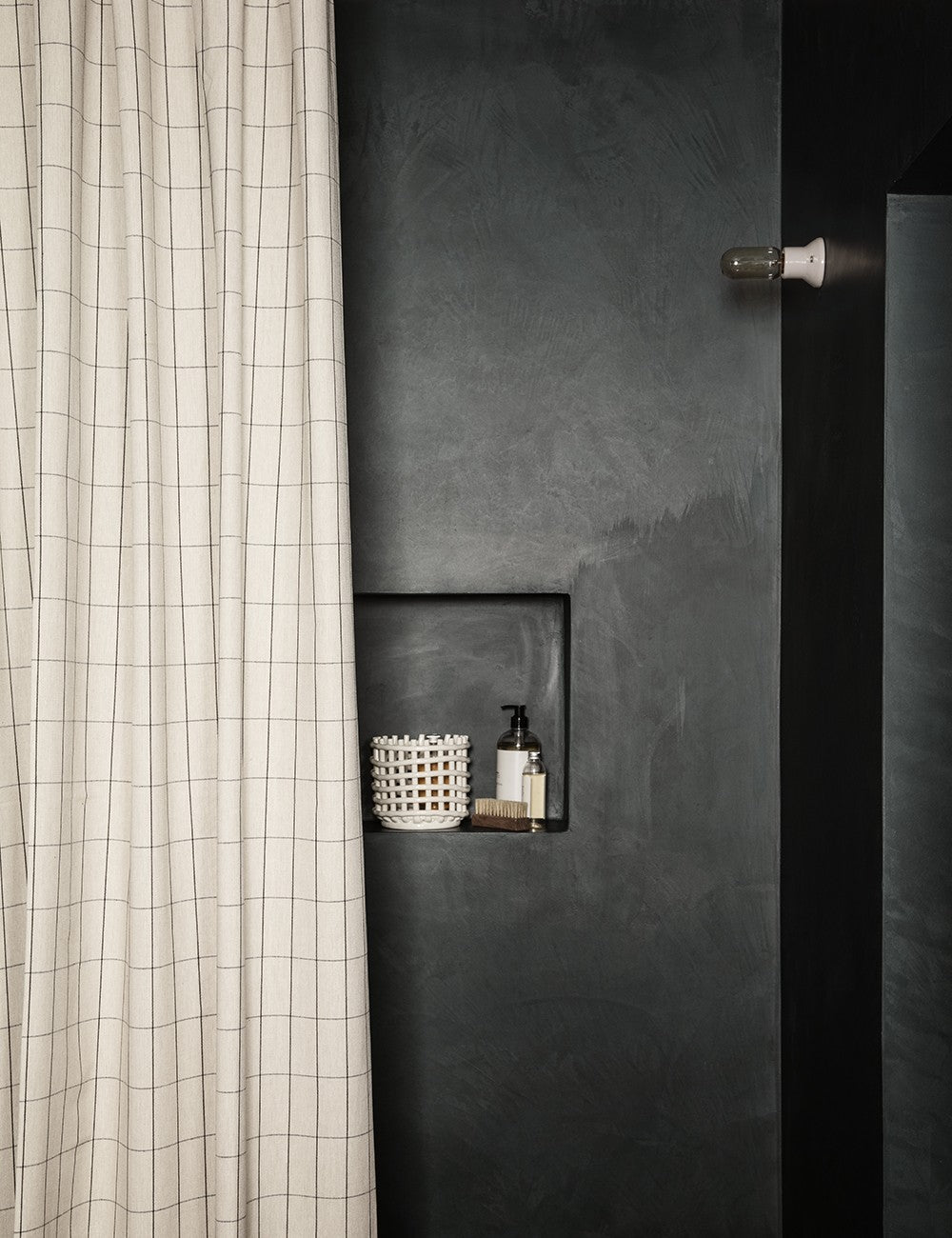 Chambray by Ferm Living é apresentado como uma cortina de duche leve e visualmente elegante.