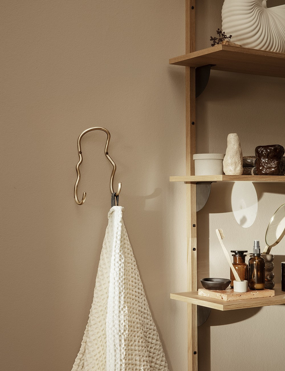 A série Curvature da Ferm Living é composta por uma série de cabides feitos à mão em latão.