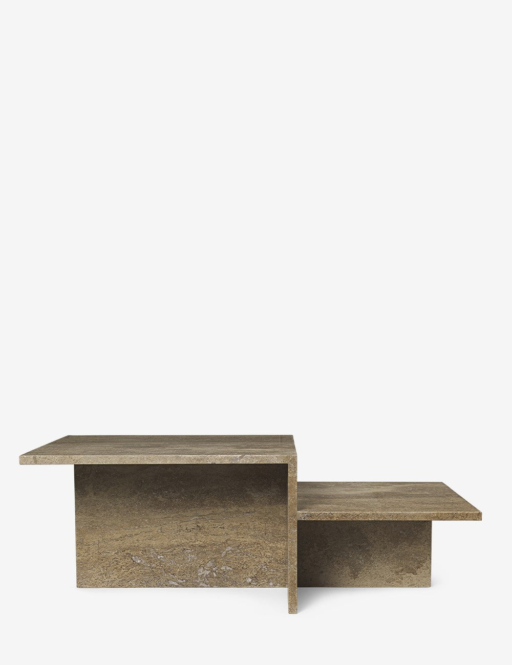 A construção arquitetônica do Distinct contrasta perfeitamente com a riqueza e textura terrosa do travertino, criando uma peça harmoniosa, simples e elegante.