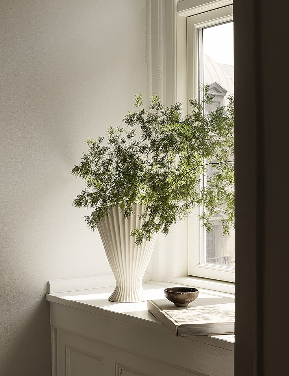 Inspirada na forma das fontes clássicas, este vaso elegante e volumoso não passa despercebido.