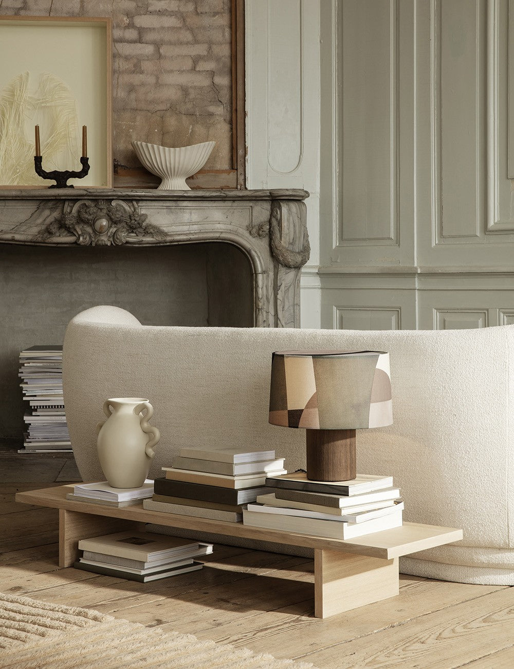 Inspirada nos móveis tradicionais japoneses tanto em design quanto em filosofia, a mesa Kona é apresentada como um móvel auxiliar de baixa altura, feito de materiais nobres.