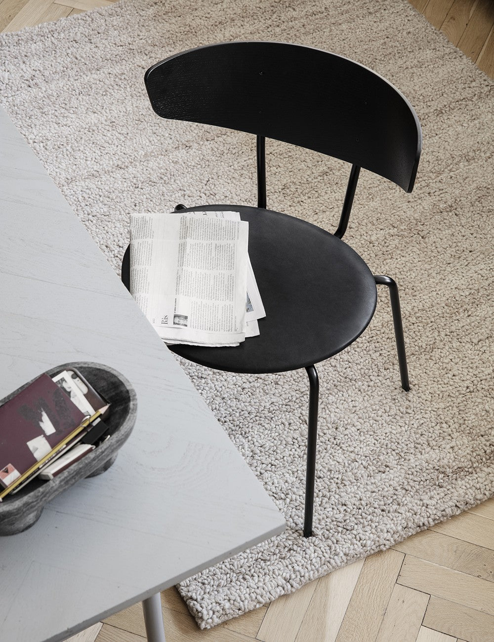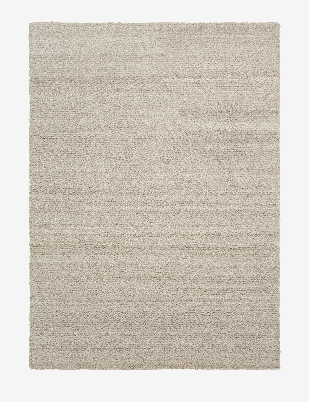 O tapete Ferm Living Loop é feito à mão com uma técnica na qual um fio fino é tecido junto com um fio grosso, criando pequenos laços.