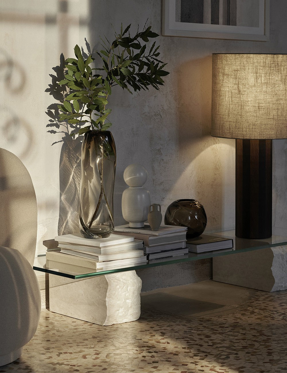 Mineral Display Table de Ferm Living combina perfeitamente dois materiais completamente opostos, criando uma mesa com aparência orgânica e linhas arquitetônicas.