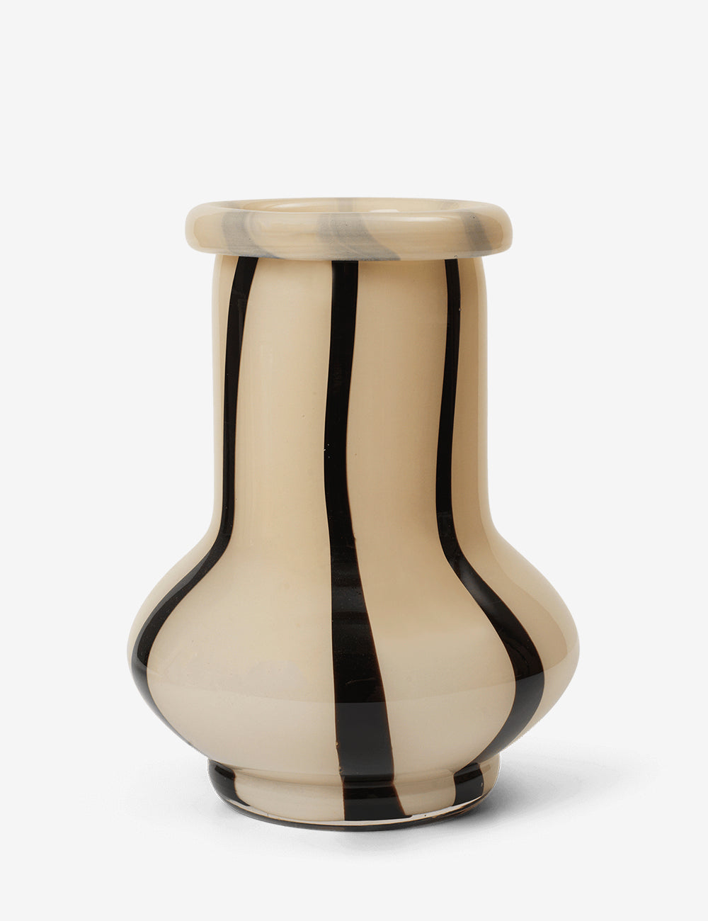 Riban funde tradição e arte com um design inspirado nos doces clássicos. Cada vaso é feito à mão em vidro soprado, tornando cada criação única, mostrando a habilidade do artesão que molda e integra cuidadosamente as linhas no corpo do vaso.