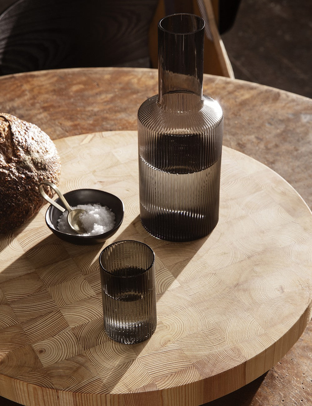 Um design sofisticado que brinca com a simetria e as ondas da superfície de cada copo. A coleção Ripple de Ferm Living é feita à mão enquanto cada peça é soprada no molde.