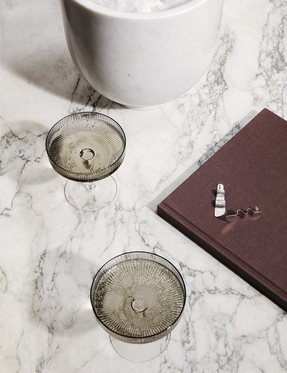 Um design sofisticado que brinca com a simetria e as ondas da superfície de cada copo. A coleção Ripple de Ferm Living é feita à mão enquanto cada peça é soprada no molde.